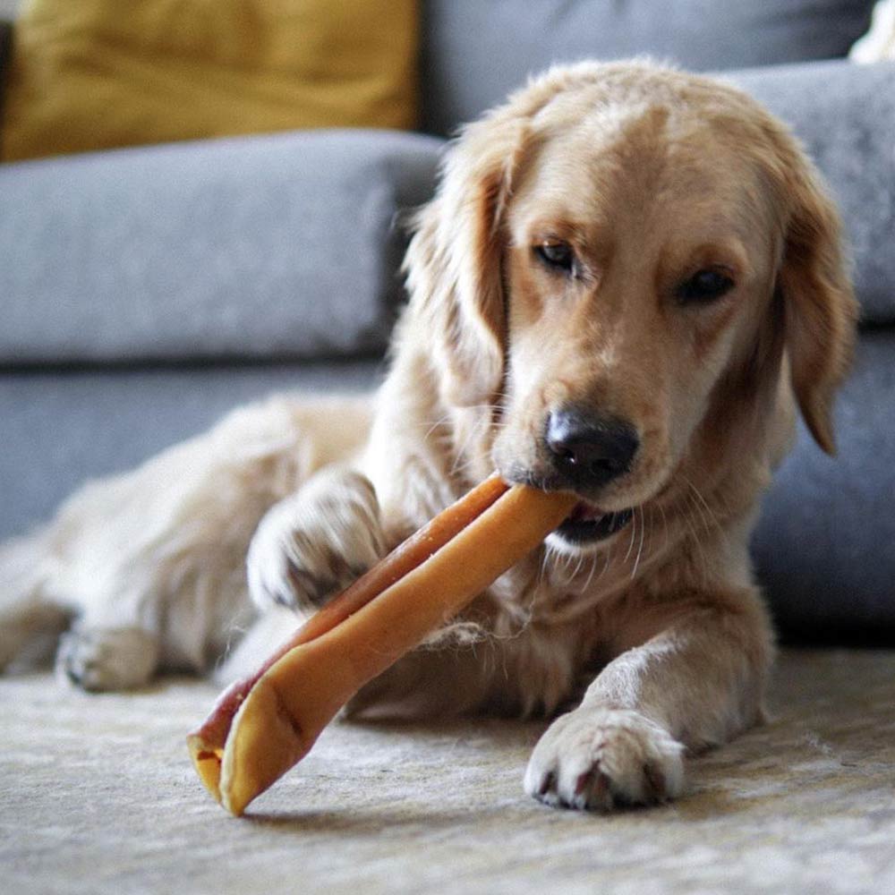 We bake our big 10"+ Pork Skin Rolls for dogs to perfection – never fried! Think of it like one big rolled up pork rind – but for pets! Made with locally sourced Canadian pork, they are 100% digestible and 100% tasty!
