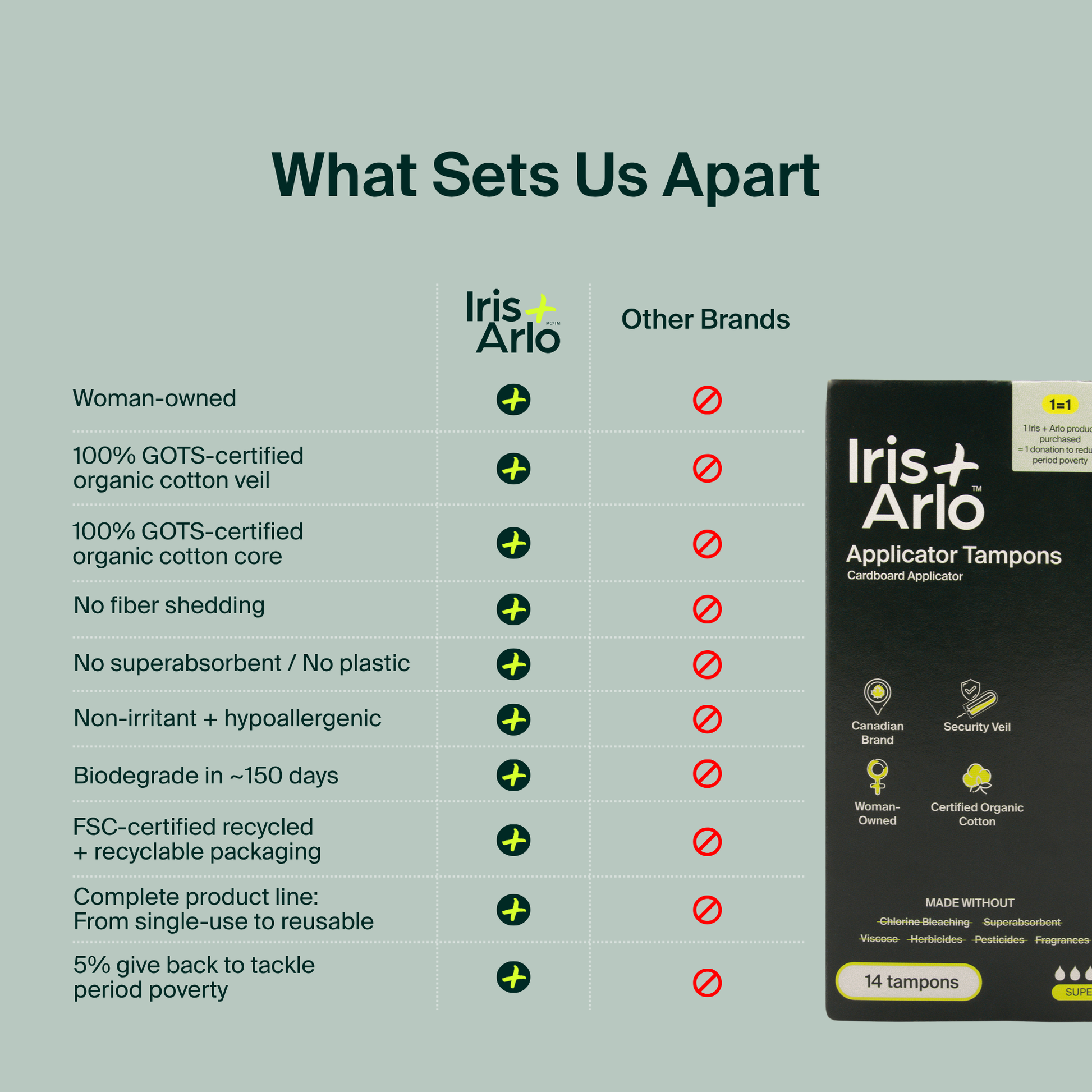 Our certified 100% organic cotton and hypoallergenic applicator tampons are eco-friendly and easy to use.