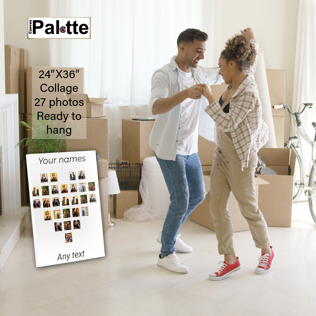 Our custom collage canvas lets you create a personalized masterpiece with 27 customizable photos and text. Whether it's a heartfelt gift or home decor, you can effortlessly upload photos to tell your unique story. Enjoy professional printing and shipping to Canada and the United States. Unleash your creativity and turn your memories into art.
