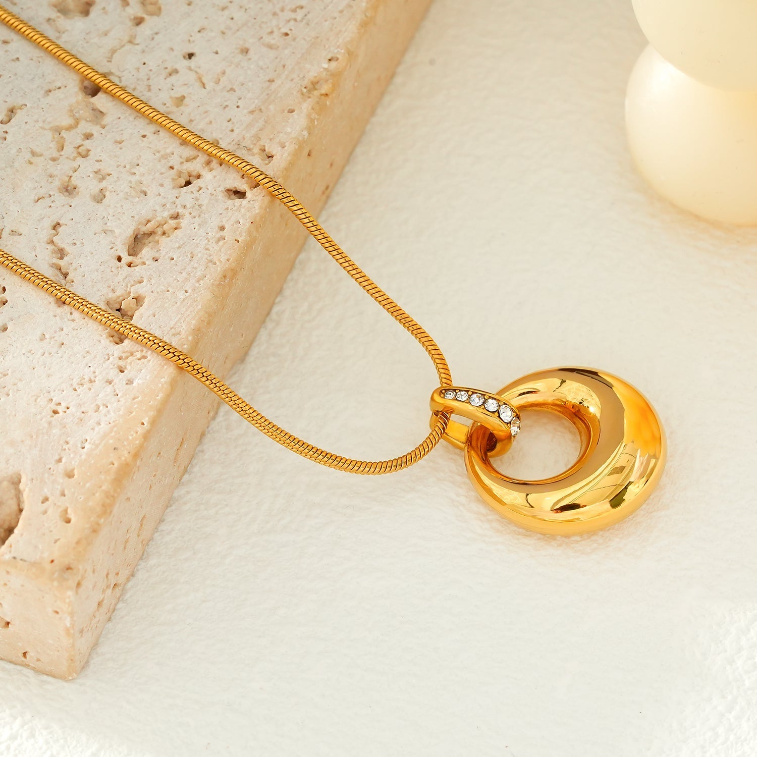ALBASIMI: Snake Skin Chain with Zirconia (CZ) Embedded Clasp & Asymmetrical Circle Pendent.