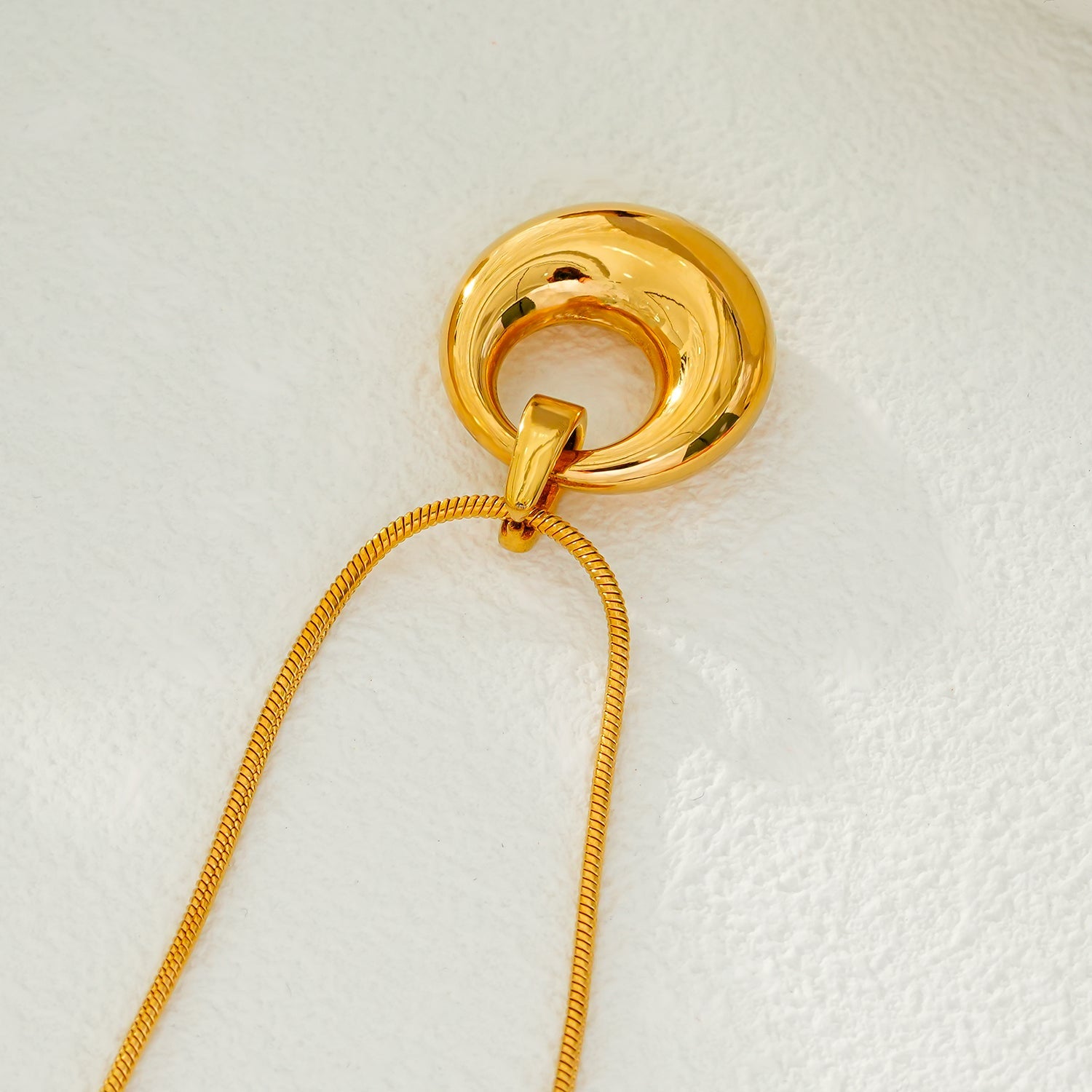 Discover the perfect blend of abstract design & contemporary style with our Snake Skin Chain with Zirconia (CZ) Embedded Clasp & Asymmetrical Circle Pendent Necklace. This stunning piece is crafted from a proprietary premium graded alloy, infused with opulent 18 karat traditional gold, ensuring a timeless elegance that enhances any outfit.