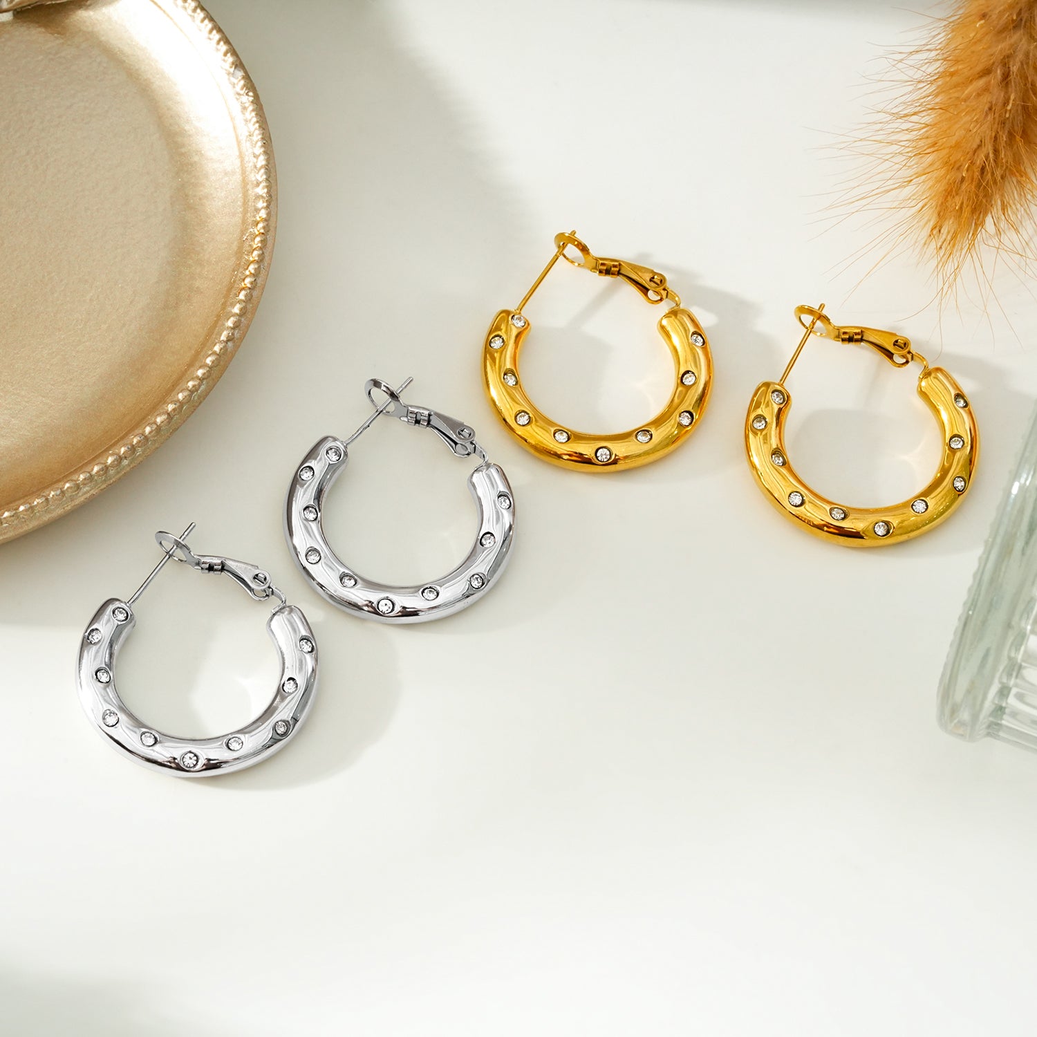 Add a touch of timeless elegance to your look with these classic mid-width hoop earrings, featuring a stunning design fully embedded with tiny cubic zirconia (CZ) gemstones. These sparkling hoops catch the light from every angle, making them the perfect accessory to elevate both casual and formal outfits. The mid-width shape offers the ideal balance of boldness and sophistication, while the CZ gemstones add a brilliant sparkle without overwhelming your look. Lightweight and comfortable for all-day wear, these cubic zirconia hoop earrings are a must-have for any jewelry collection. Enhance your everyday style with these elegant, sparkling hoops.