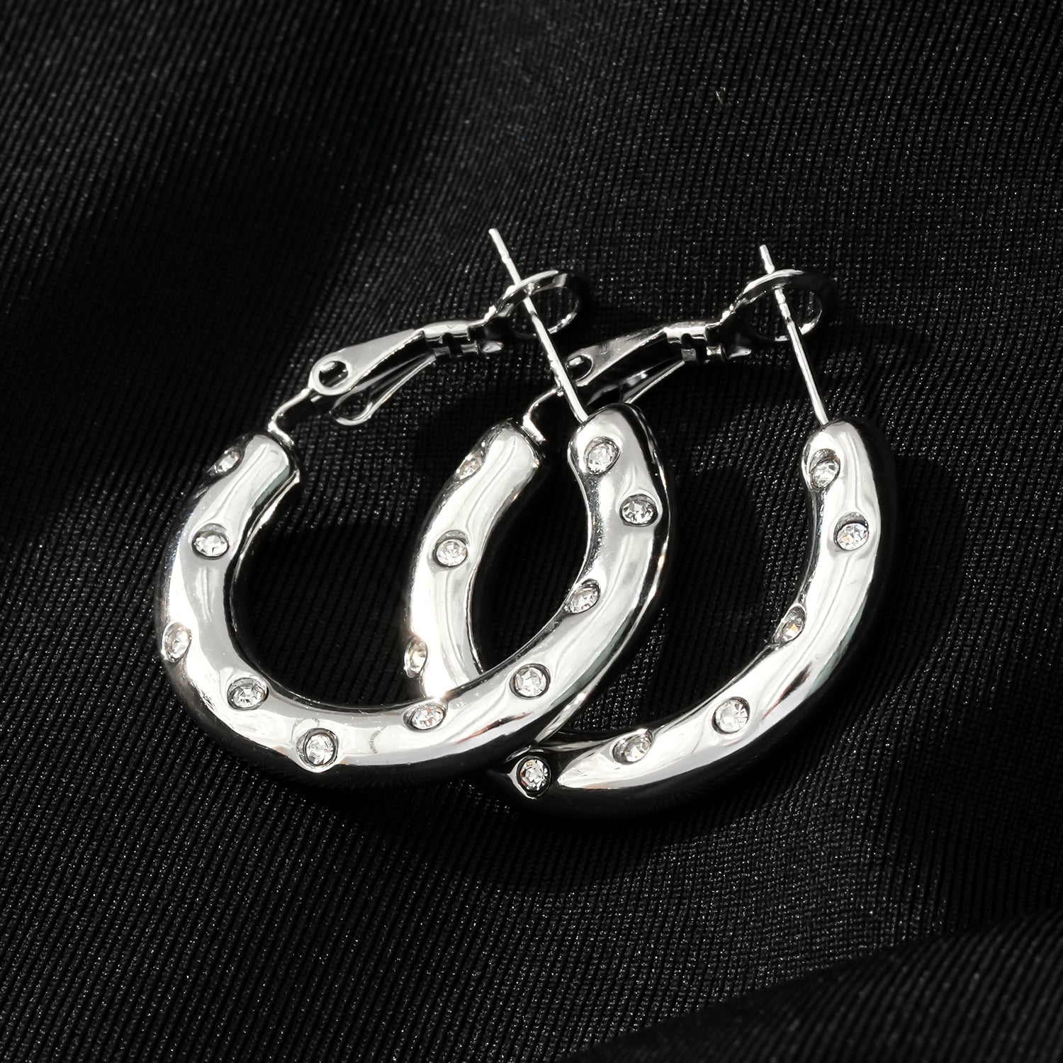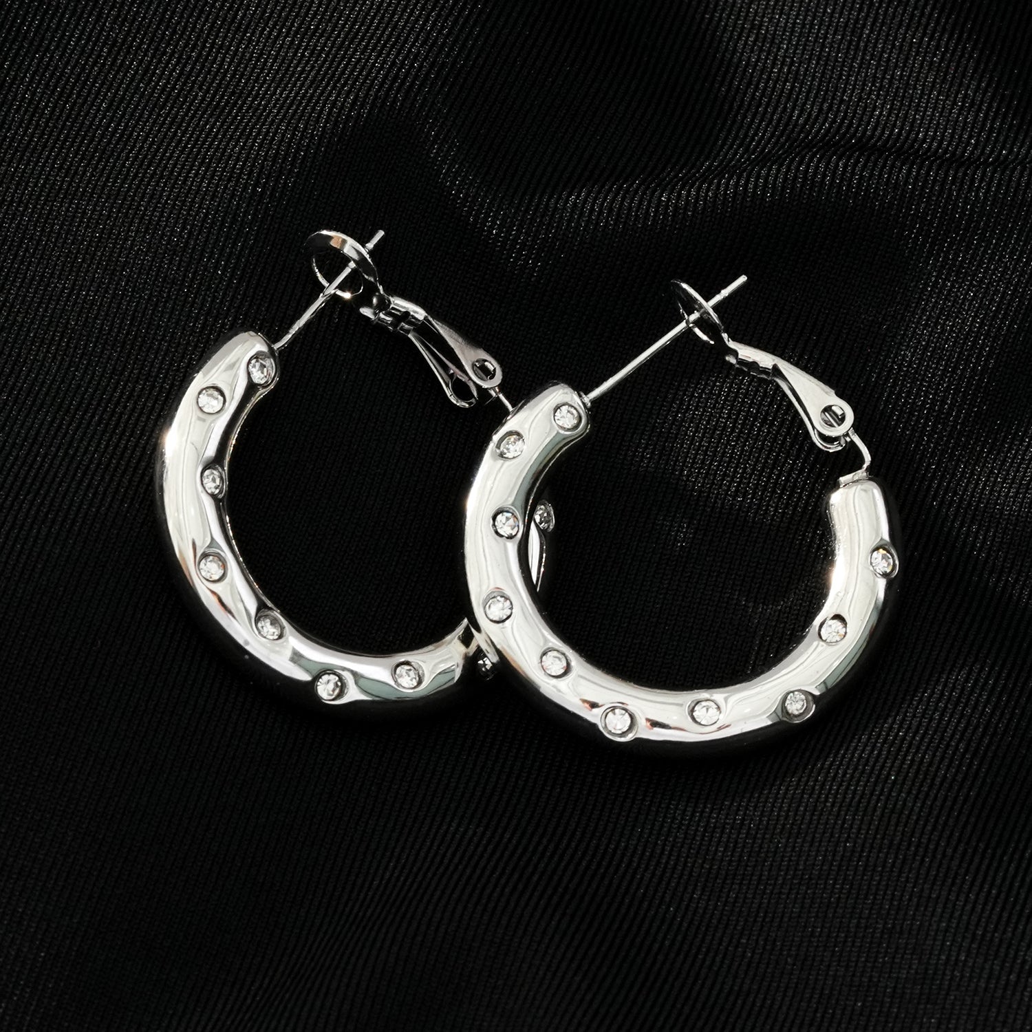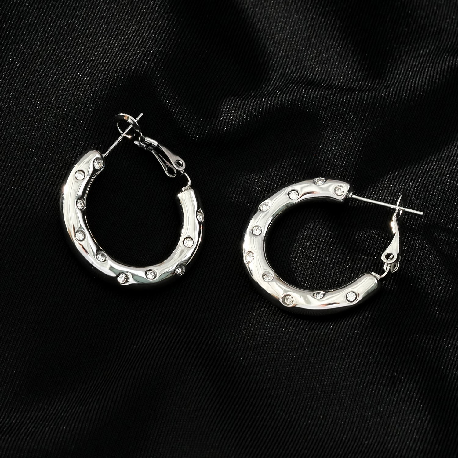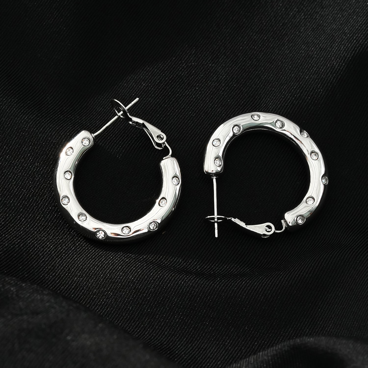 ALFRISTON White Gold (Silver Toned): Mid-Width Hoops Embedded with Zirconia (CZ) Gemstones