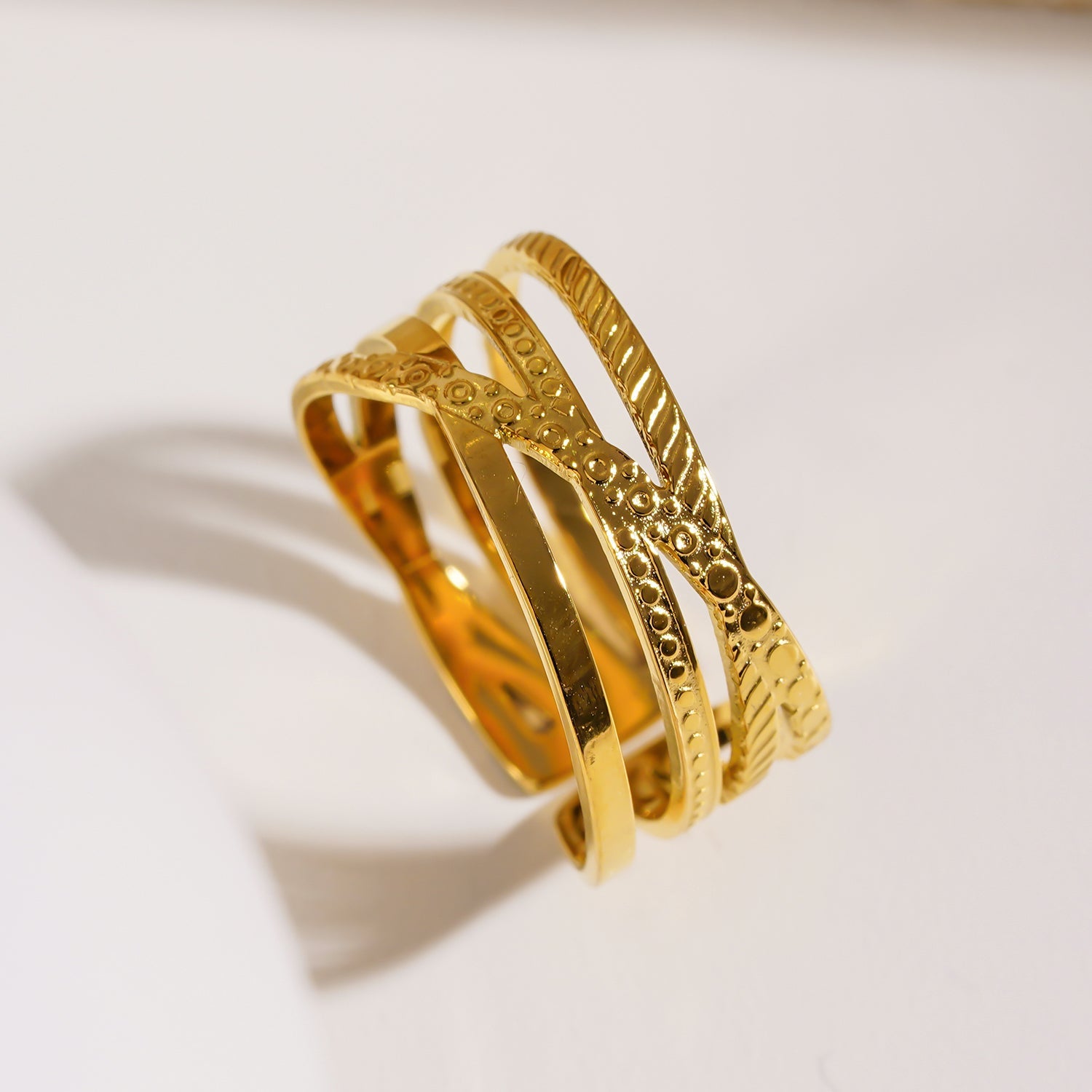 ALOIS: Cross Over Multi Stacked Textured Gold Ring