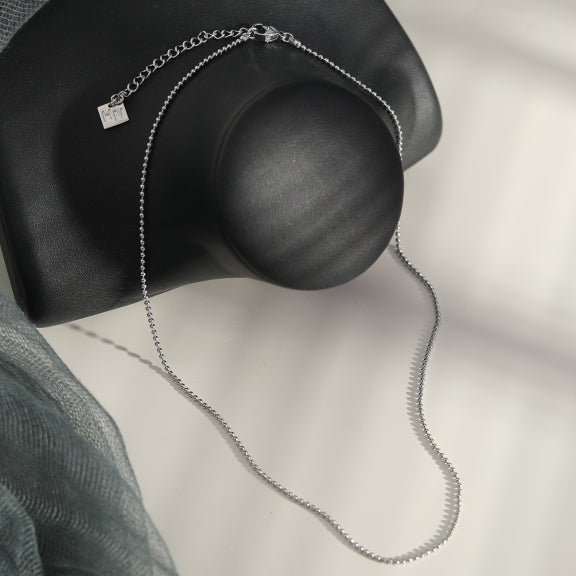 Style: ALYONA 2247 Dainty Beads-Chain Silver Necklace