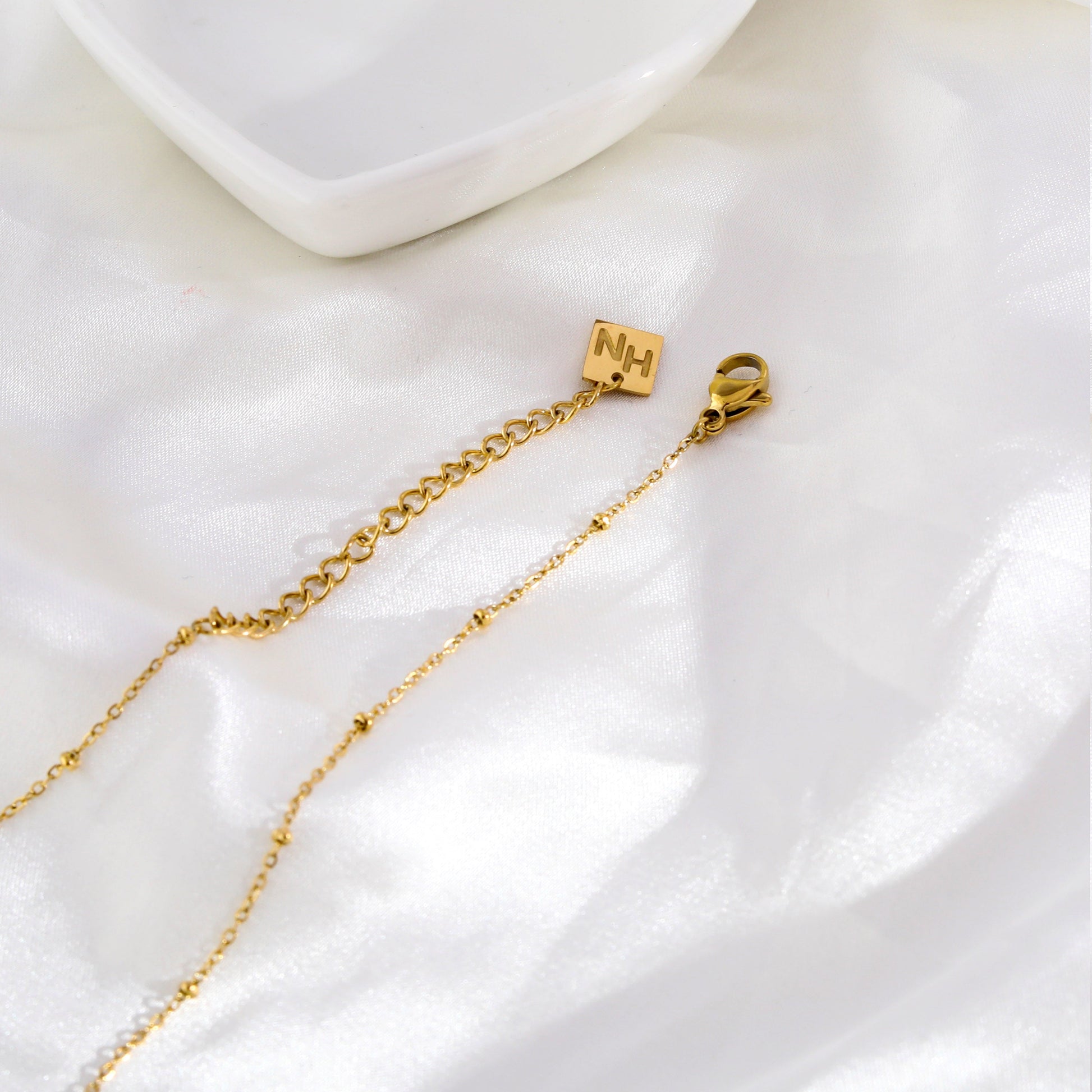 AMASA: Beaded Chain with Star & Pavé Crescent Moon Zirconia Charm - Gold