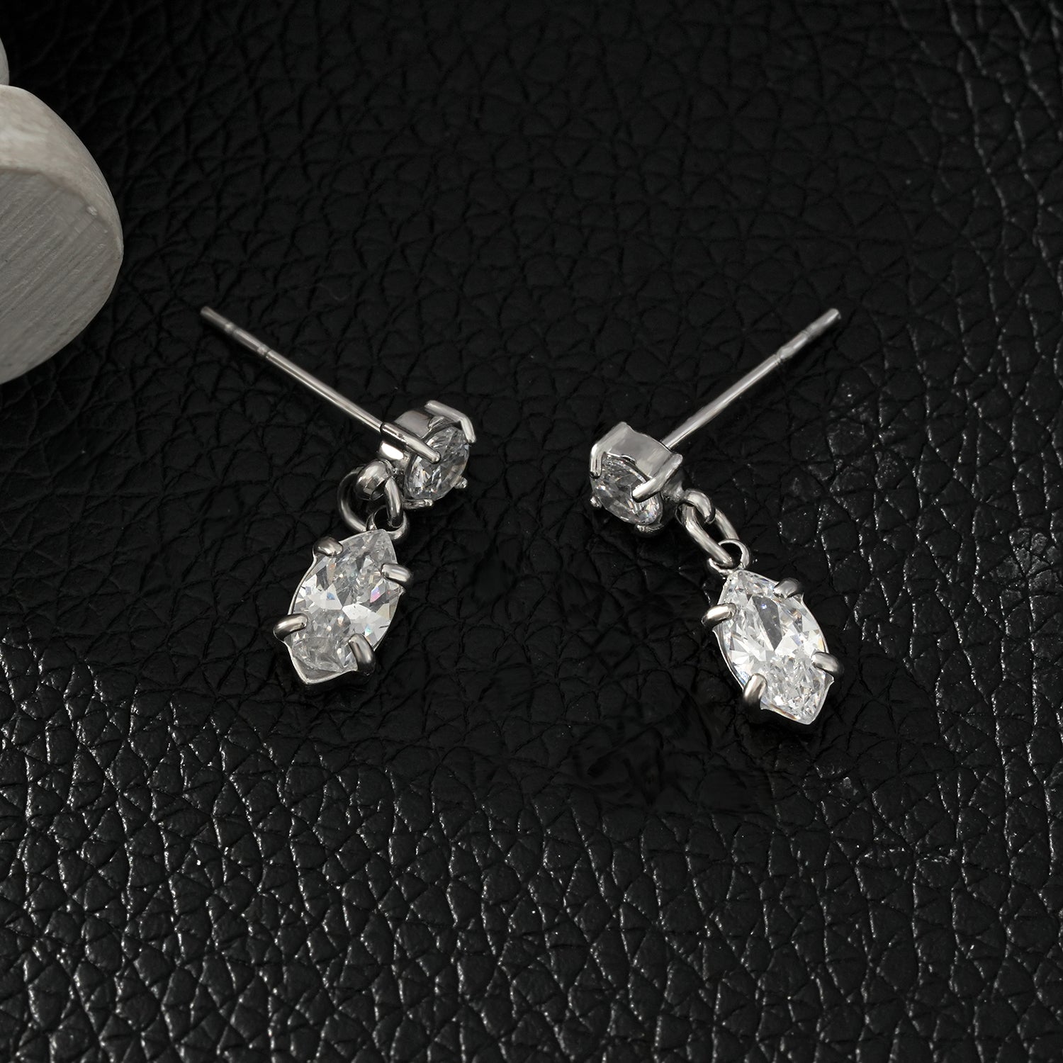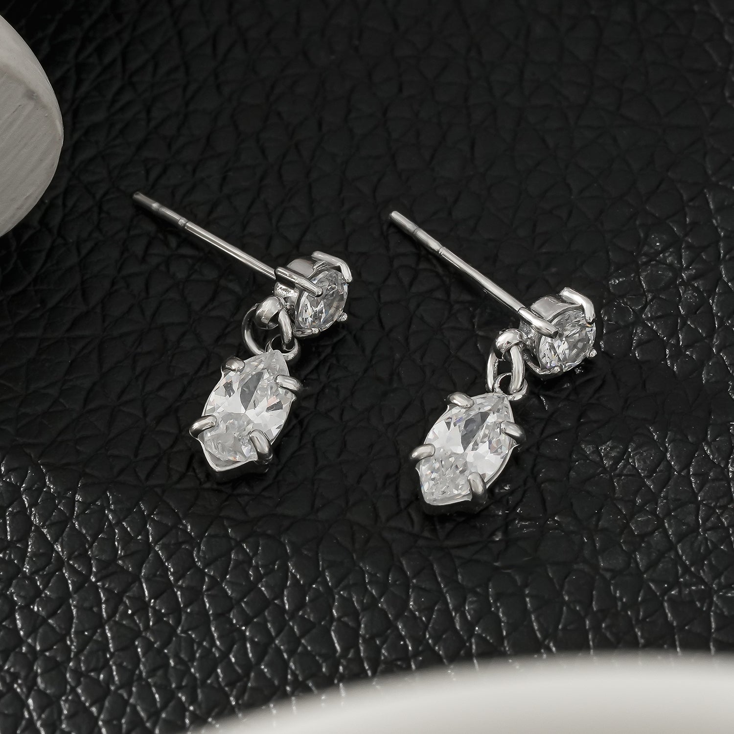 Add a touch of sophistication to your jewelry collection with these stunning drop earrings, featuring two exquisite zirconia gemstones linked by a delicate mini chain. Designed for effortless elegance, each earring showcases a brilliant round-cut zirconia at the top, gracefully connected to a radiant oval-shaped zirconia at the bottom, creating a mesmerizing dangle effect.