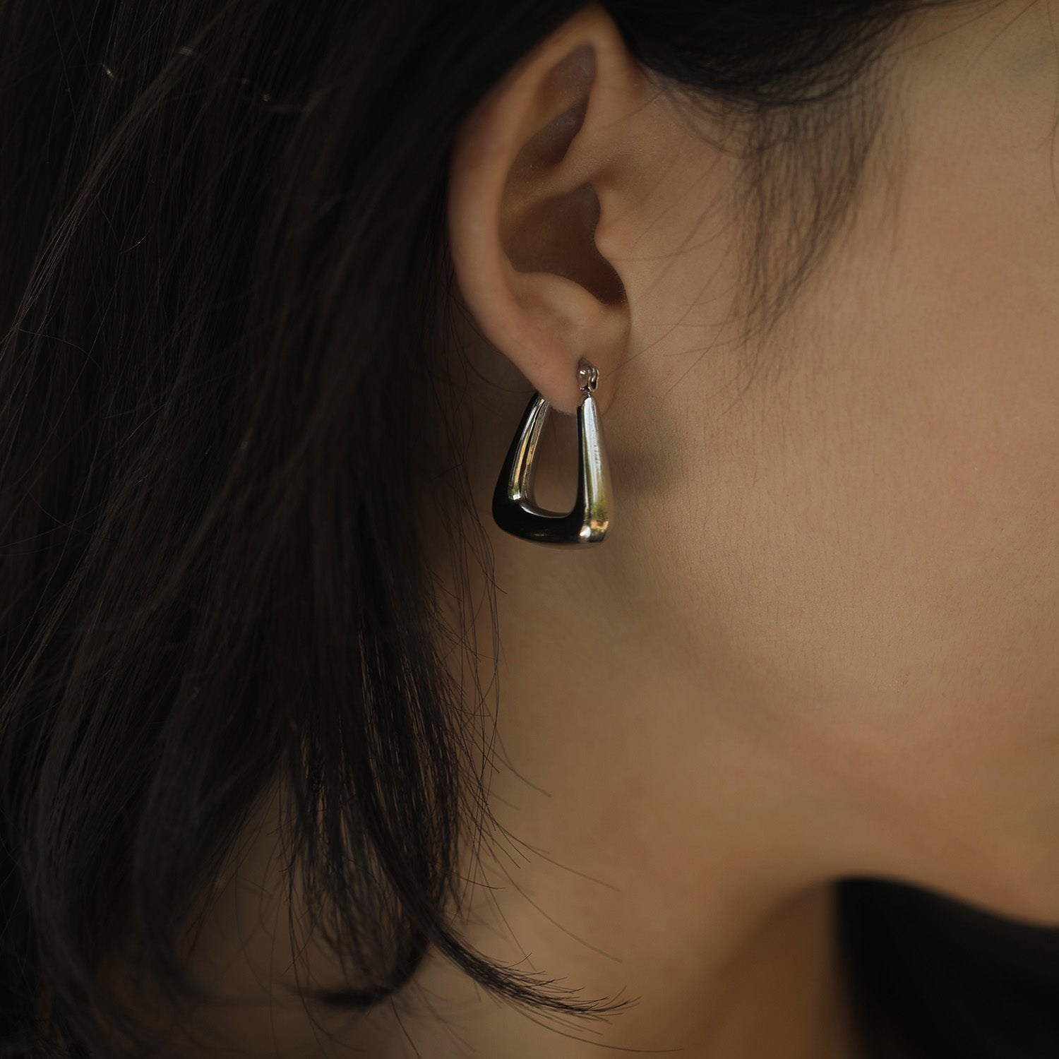 Uniquely shaped hoop earrings for work or play. Elegantly tapered, these earrings make a cool statement.