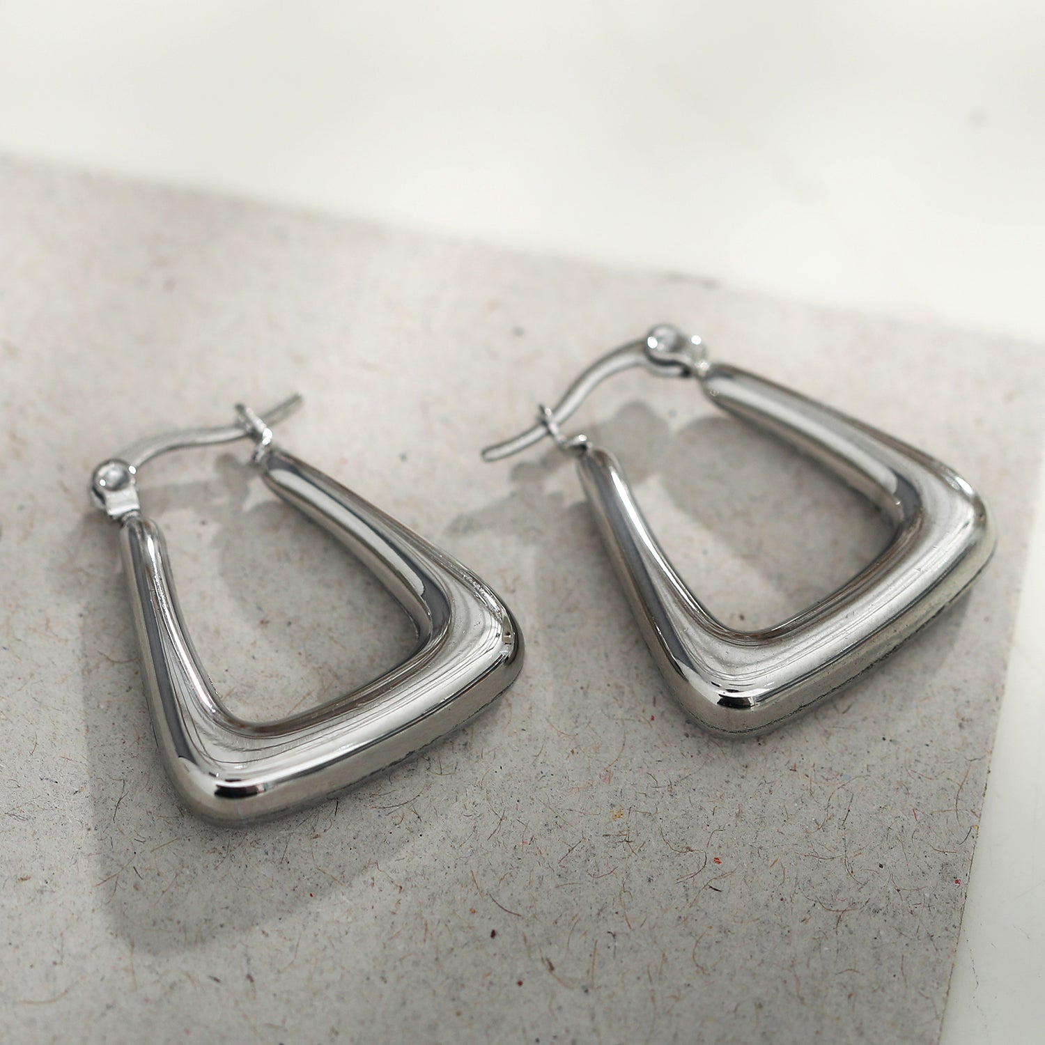 ANIKA: White Gold (Silver Toned) Triangular Chunky Mini Hoop Earrings
