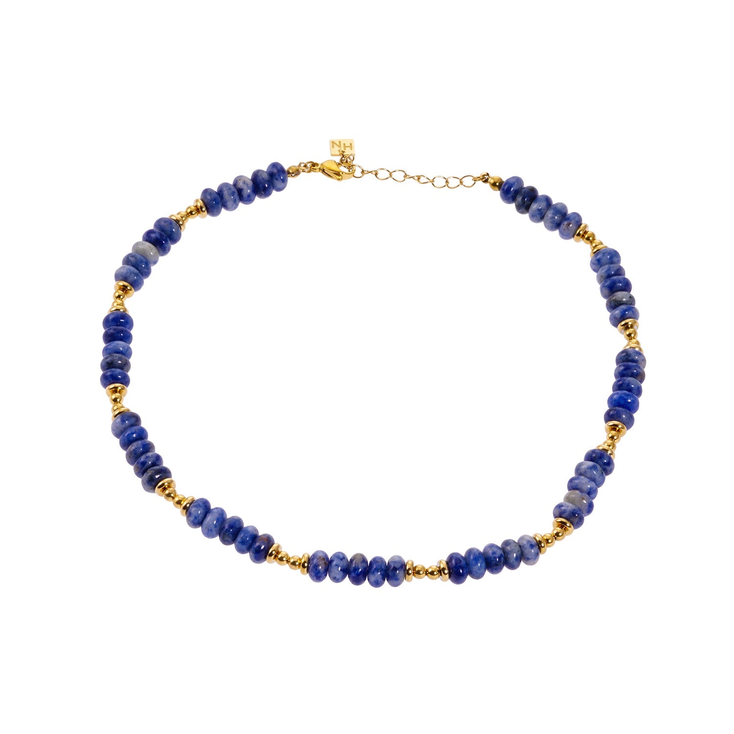 Style ANJA 4756: Sodalite Stone & Gold Beaded Modern Boho Chain Necklace