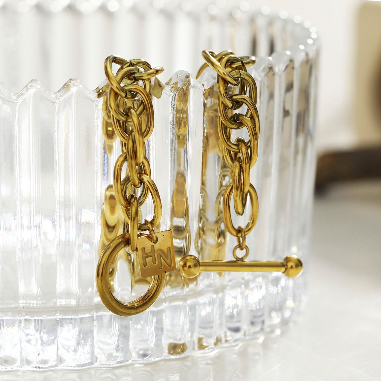 ARDA Gold: Chunky Intricate Multi-Link Bracelet with Circle & T-Stopper