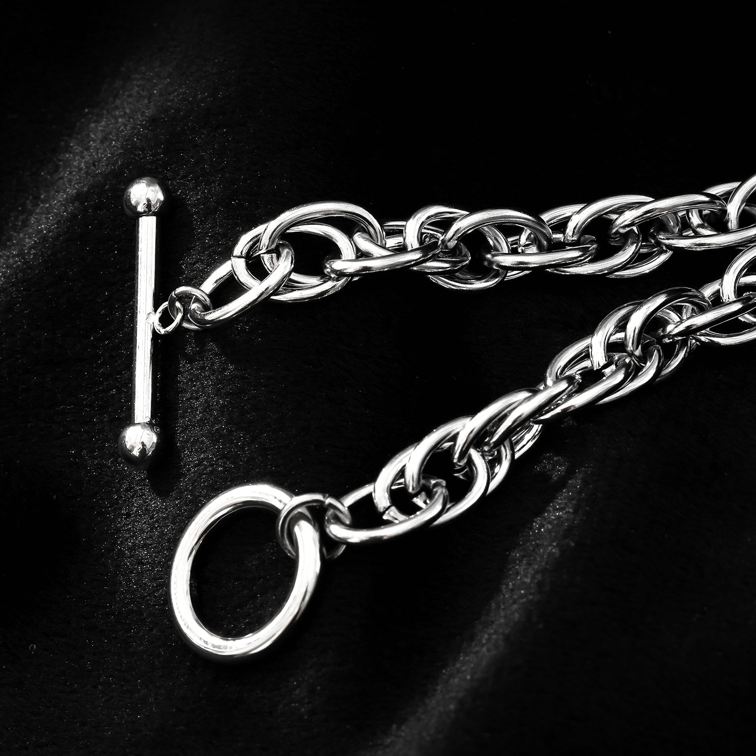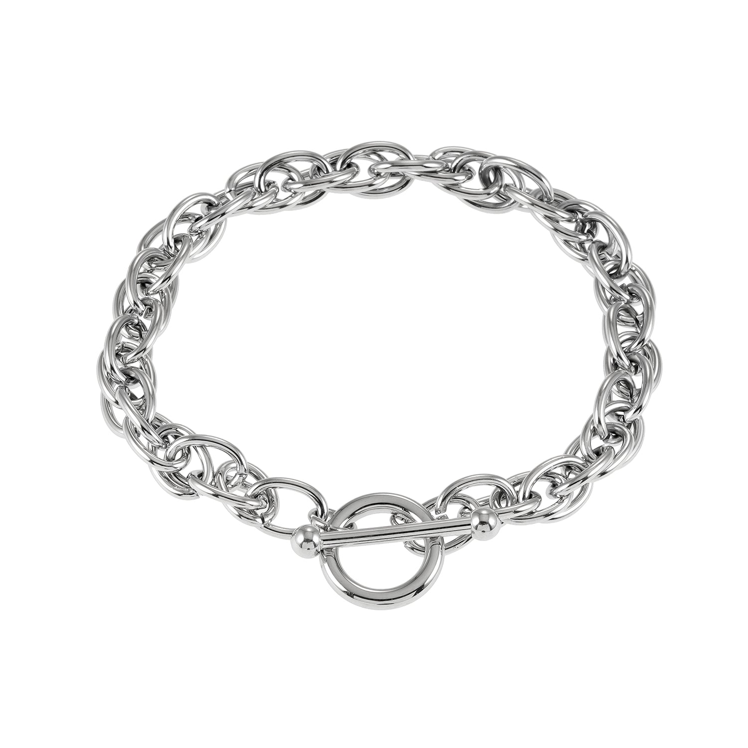 ARDA Silver Toned White Gold: Chunky Intricate Multi-Link Bracelet with Circle & T-Stopper