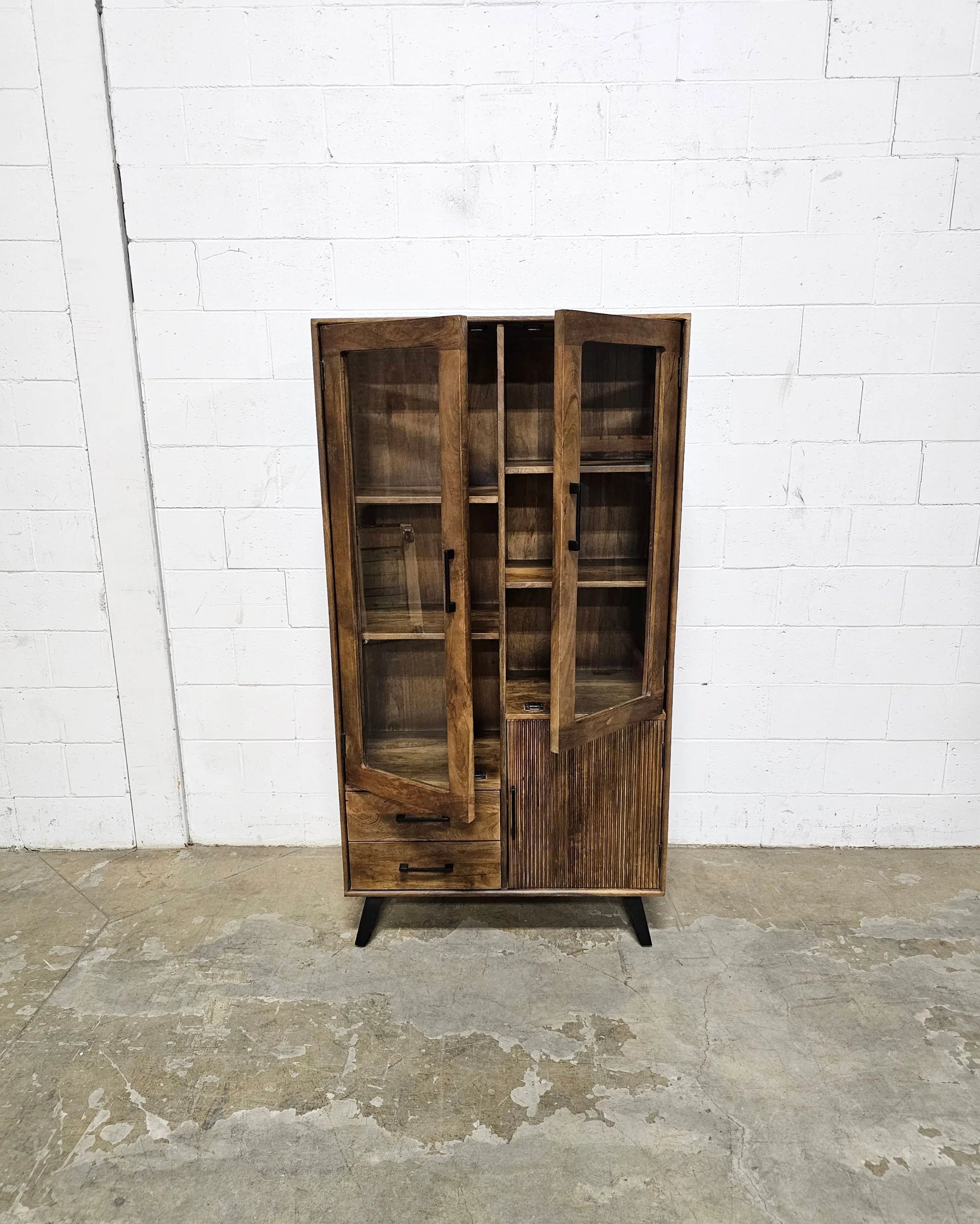 Armoire Arezzo en bois de manguier portes vitrées
