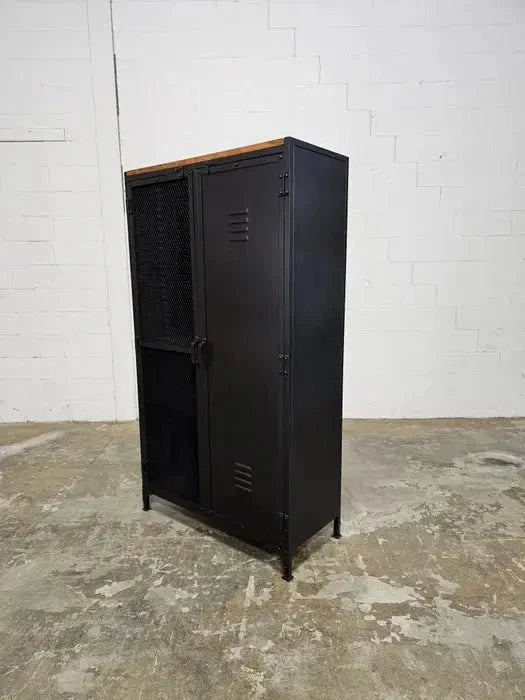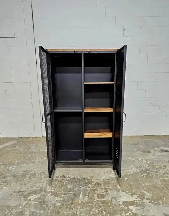 Armoire industrielle style casier avec porte en grillage 4 tablettes à l'intérieur
