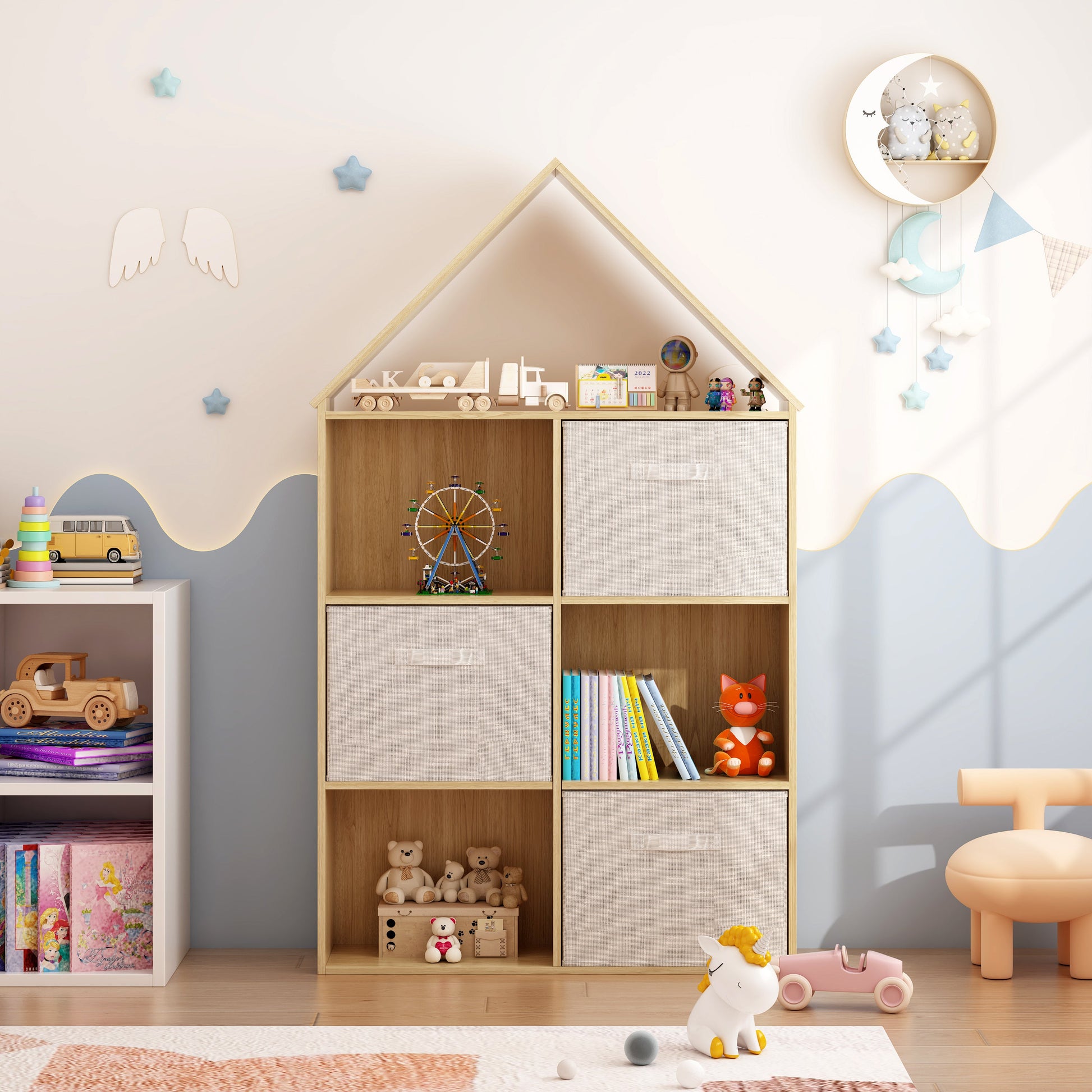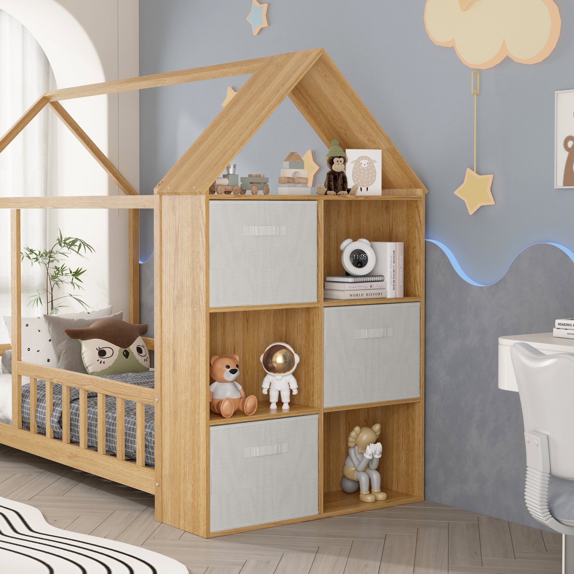 The ARY House Bookshelf pairs perfectly with our ARY House Beds for a complete Montessori-inspired look, or stands beautifully on its own as a cute and practical addition to any room. With multiple cubbies and cloth drawers, it offers both open display and hidden storage options to suit your needs.