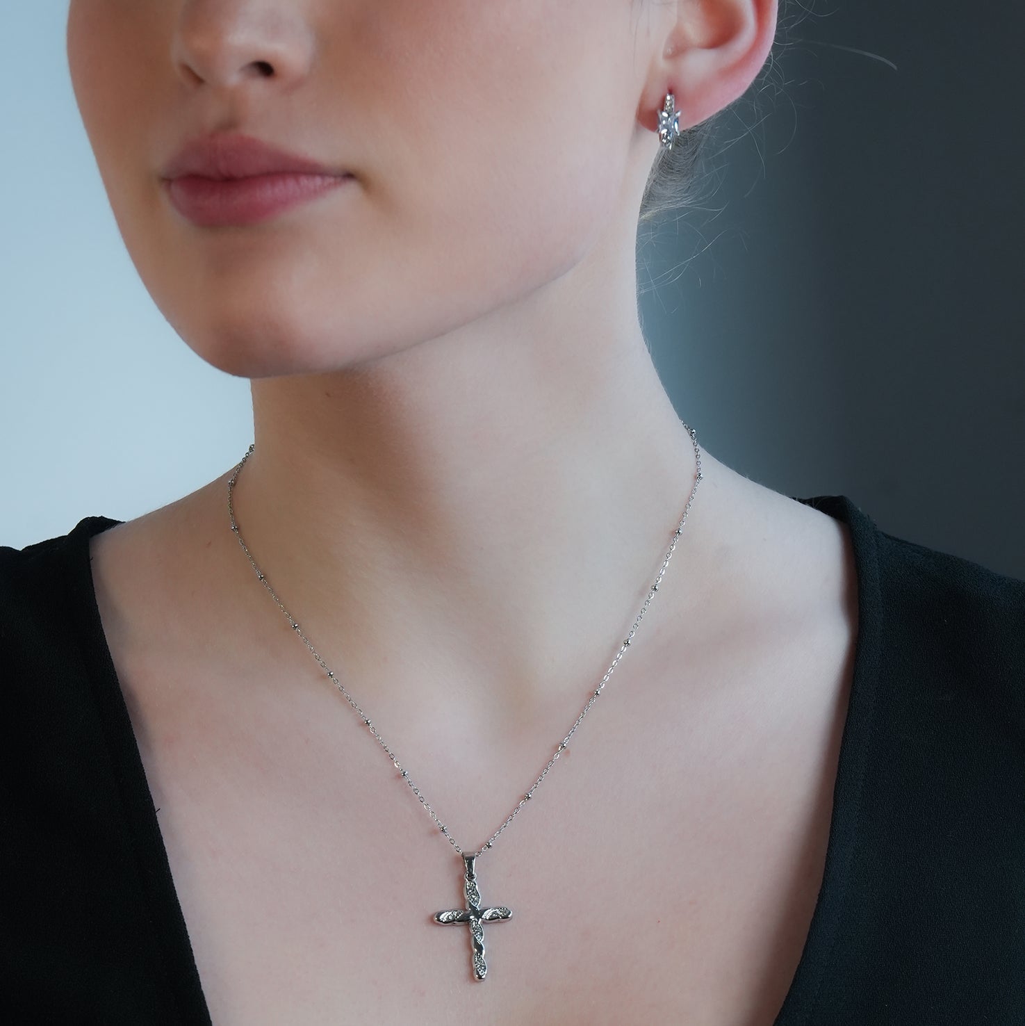 Crafted from a proprietary premium alloy; Infused in opulent 18 karat traditional & lavish 18K white gold (silver tone). As adornments we use sustainable natural stone & shell, fresh water pearls and non-conflict AAA zirconia gemstones.