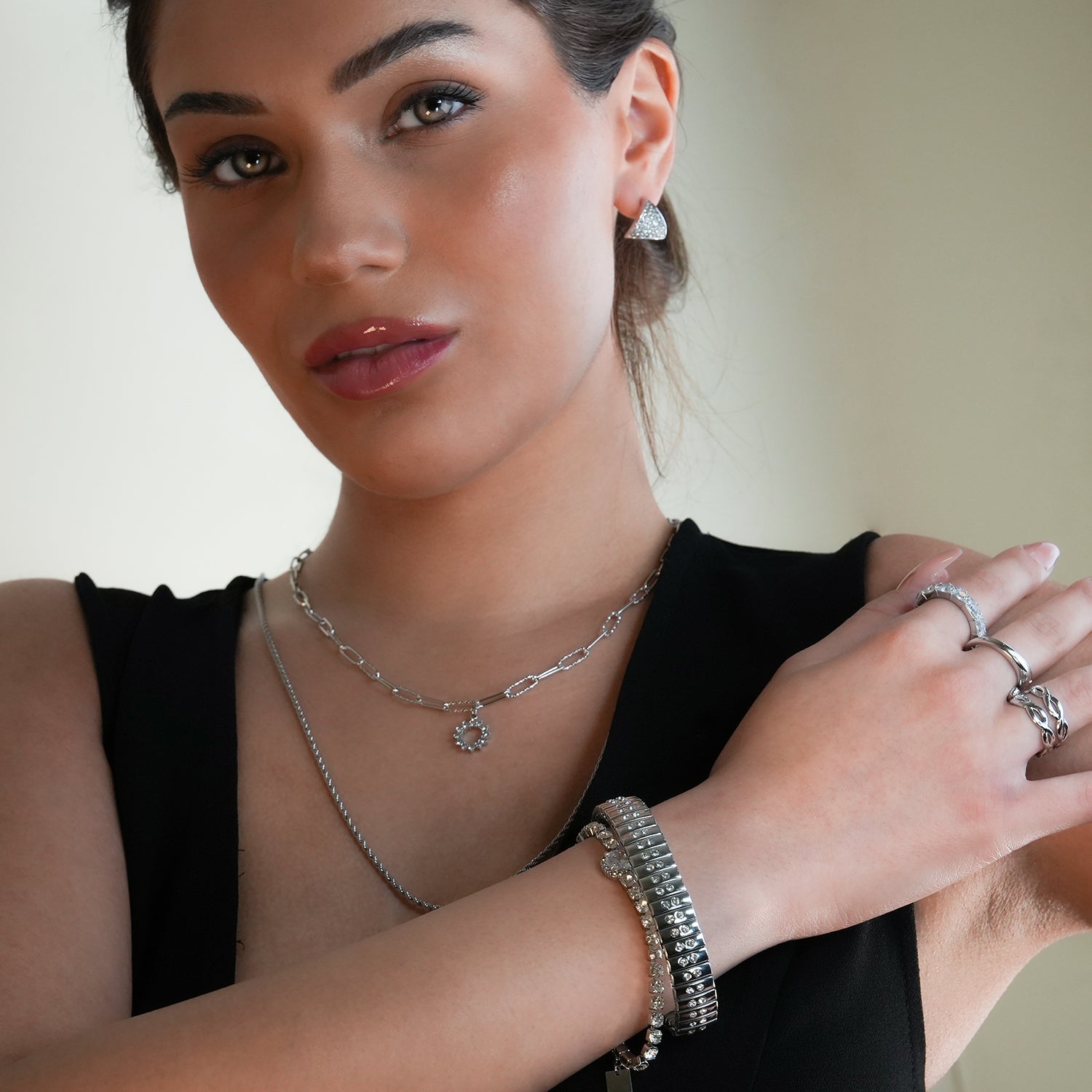 Wear this Tennis Bracelet solo for understated elegance or stack it with complementary bangles for a bold, layered look. The sparkling zirconia centerpiece ensures it stands out, making it the perfect statement accessory.