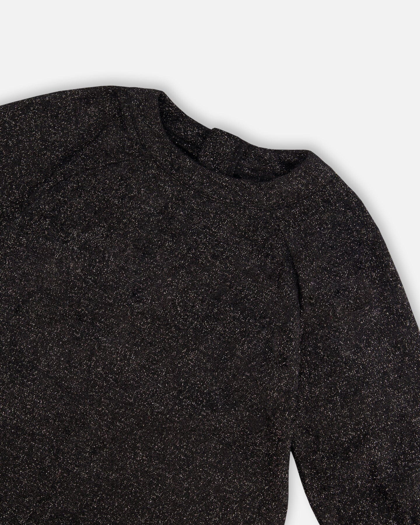 Bi-Material Long Sleeve Dress With Frill Shimmering Black