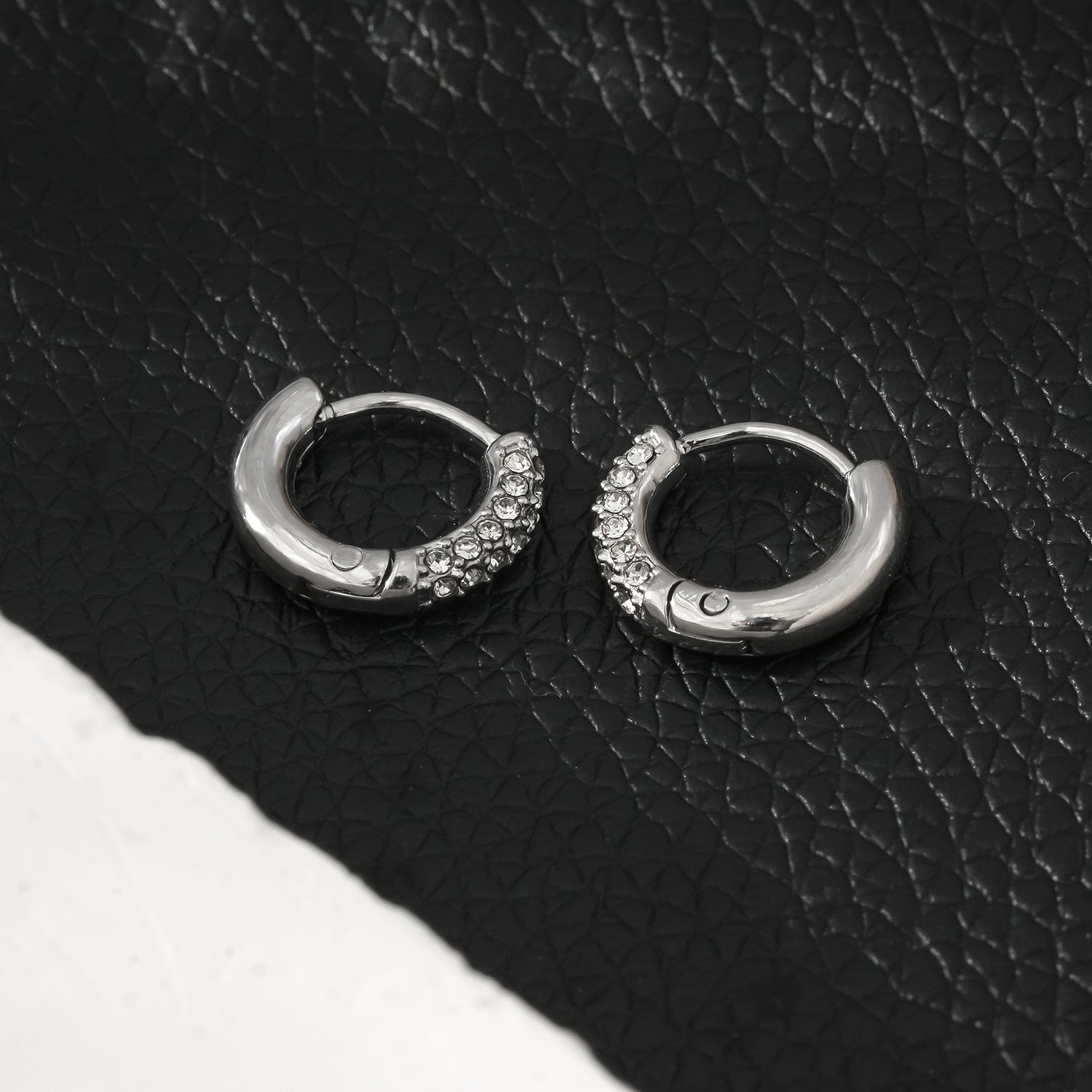BISHO Silver (White Gold): Sparkling Rows of Pavé Zirconia on Classic Mini Hoop Earrings