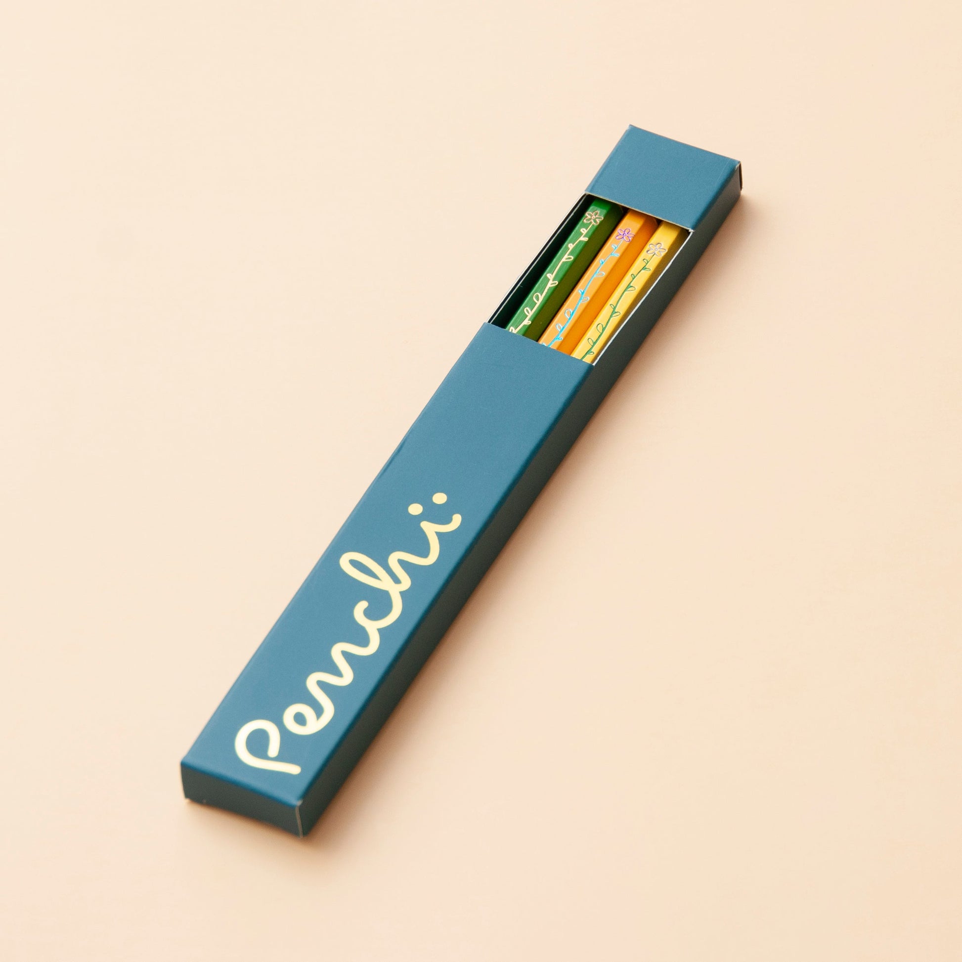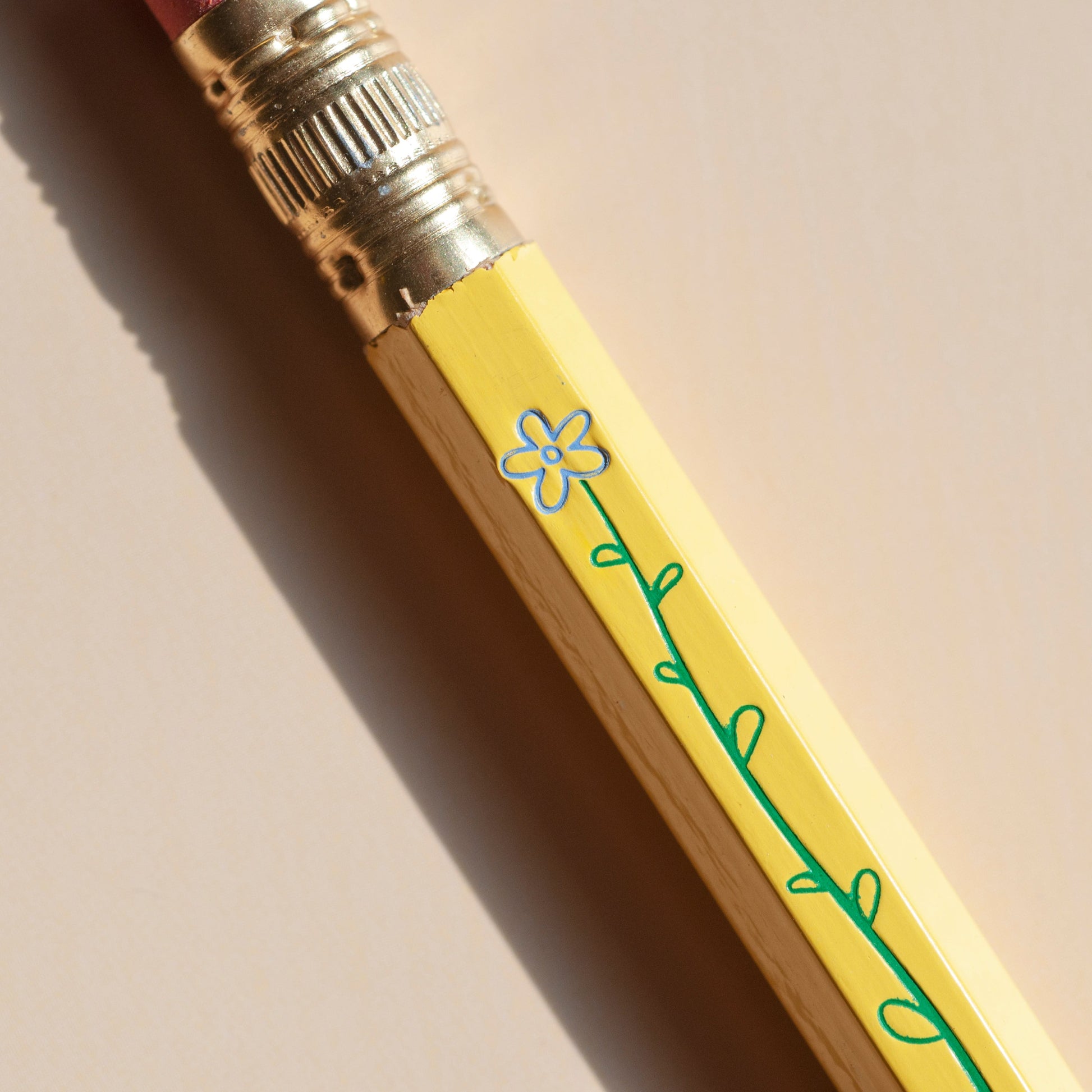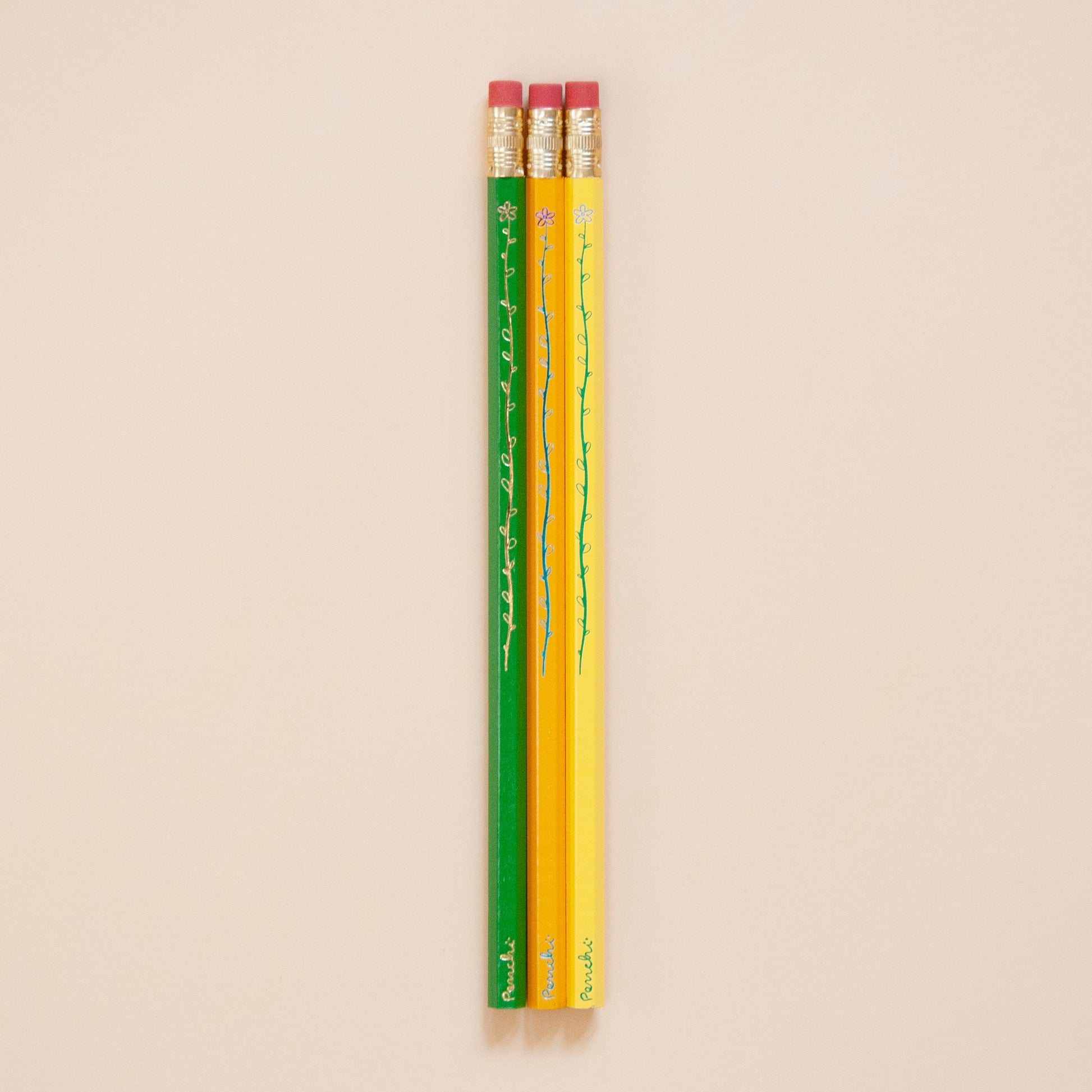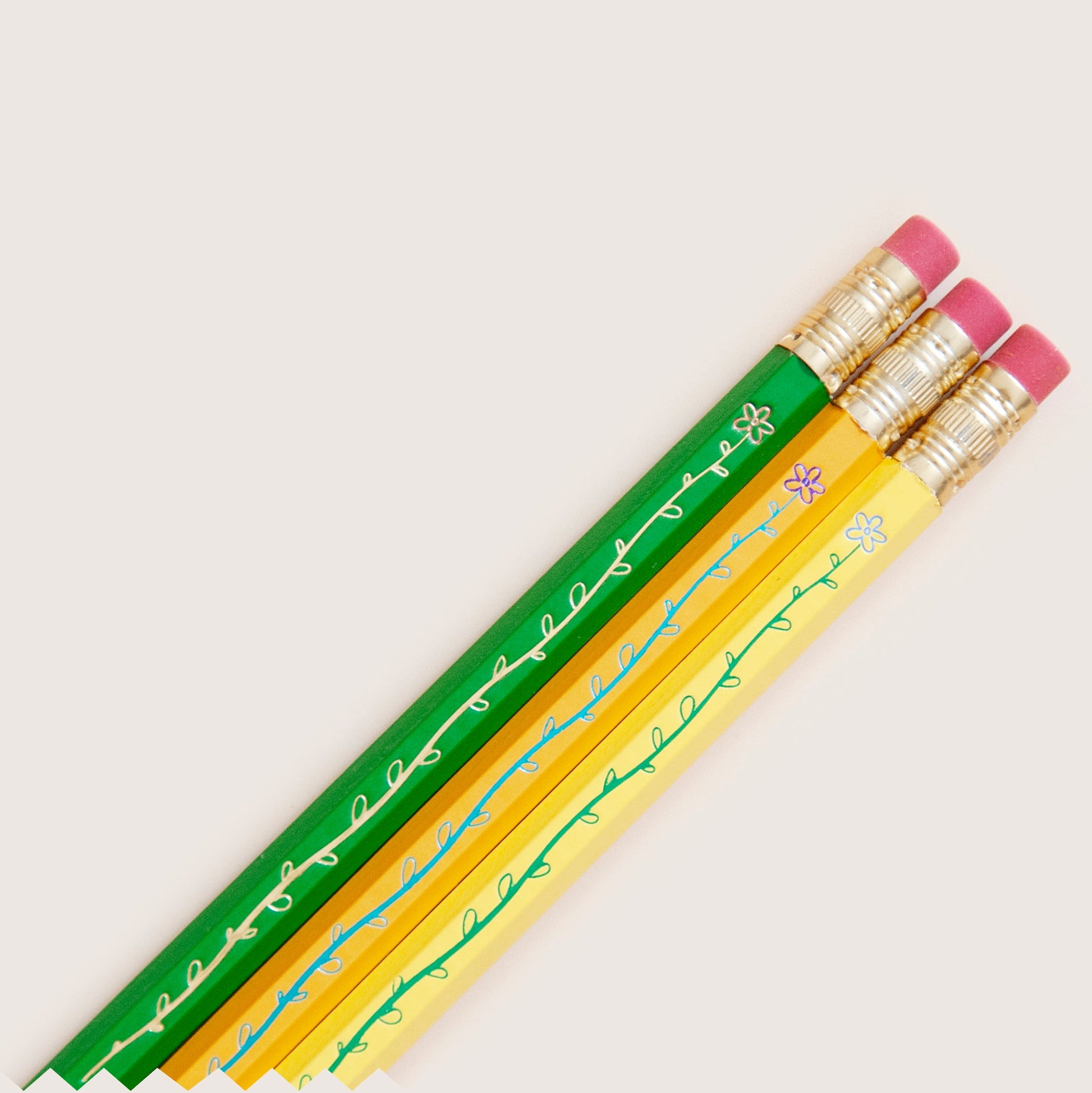 This novelty pencil set features a long leafy flower. Watch it shrink as you sharpen the pencil away! Each pencil in this set (Set 1) features two stamps: one foil colour for the stem, and one foil colour for the flower. The remaining pencils feature a single-colour flower.