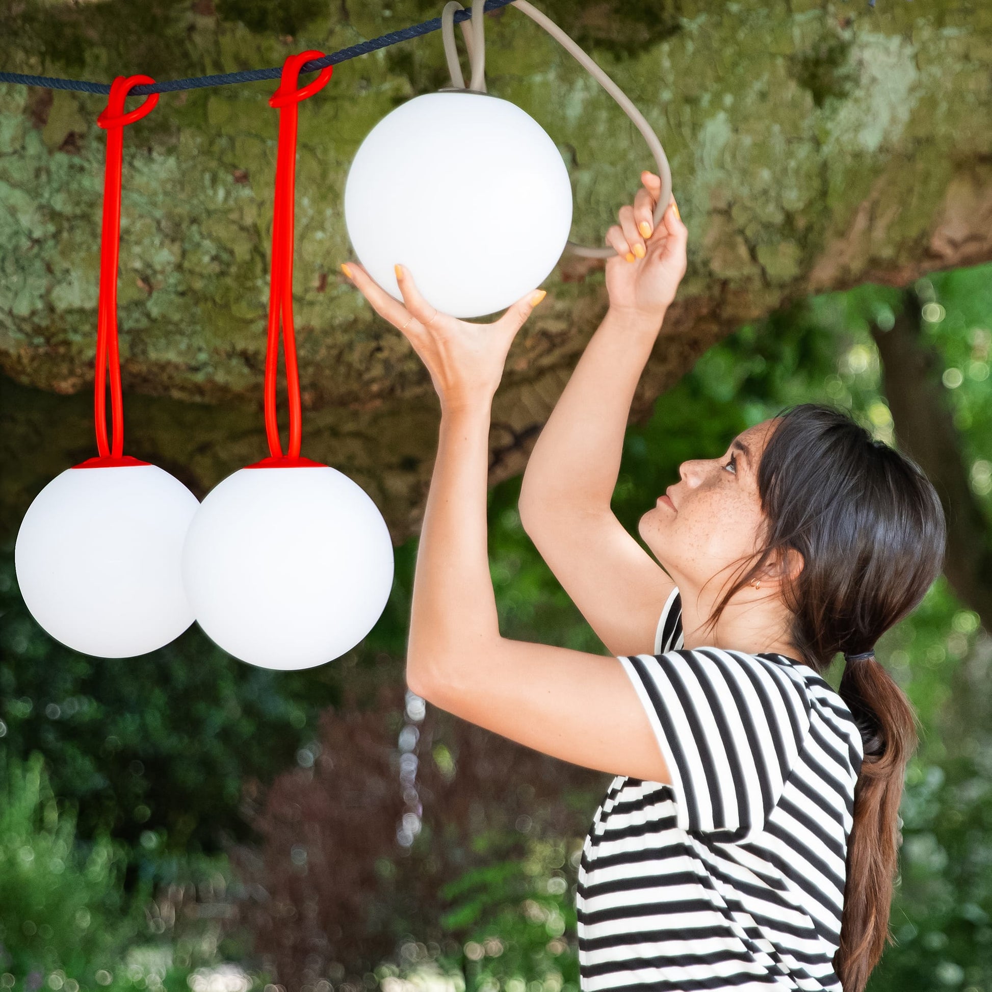 Bolleke is the ultimate mood maker. It ramps up the ambience wherever you use it. And you don't need an electrical outlet or extension cable either. This spherical light can easily be hung on a cord or hook on a tree or even under your parasol. Time to go inside because darkness has fallen? Why? With Bolleke the evening is still young.