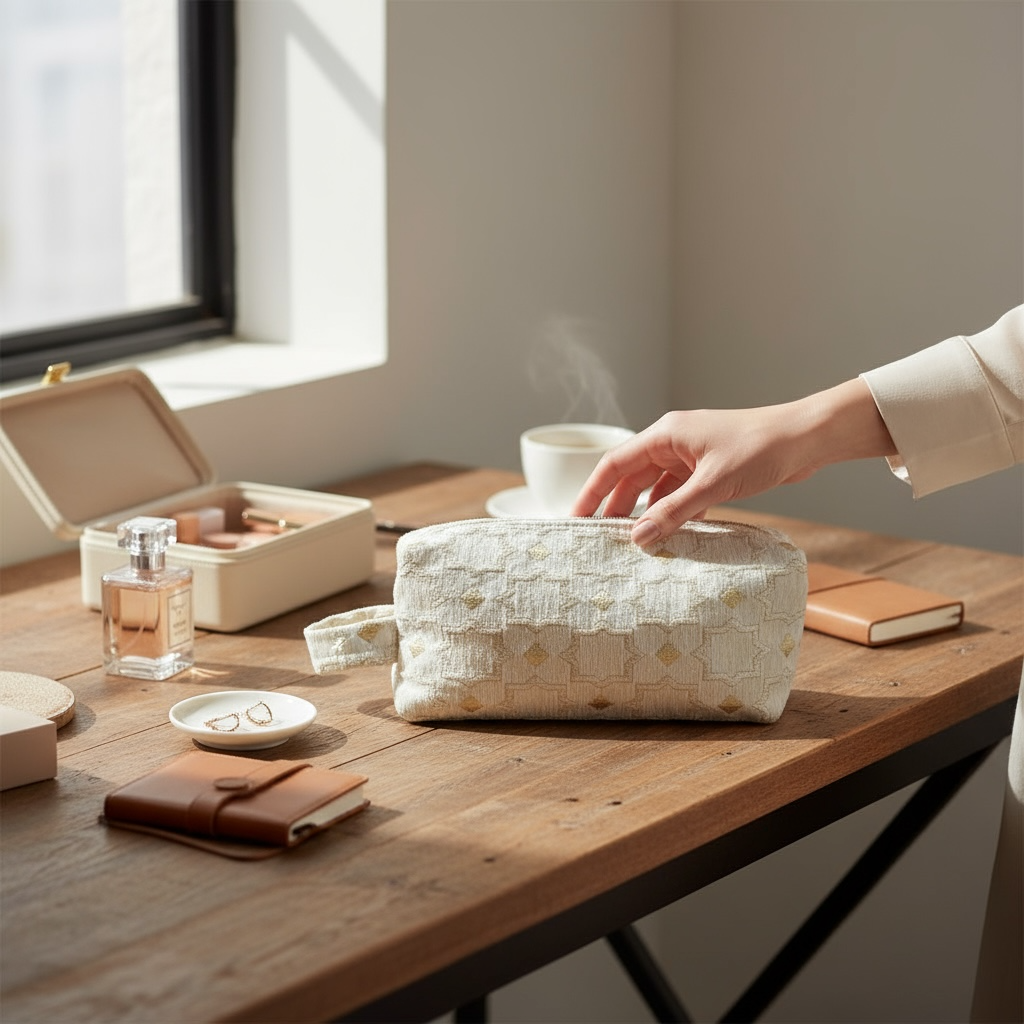 Lined with soft fabric and featuring a secure zipper closure, it offers refined organization for your essentials on the go. Combining timeless design with practical functionality, it’s an ideal companion for sophisticated travellers.