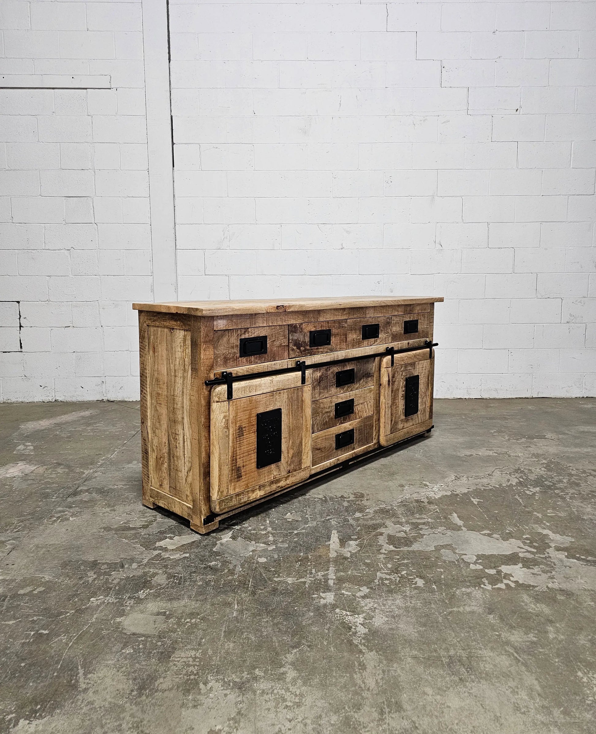 Buffet Farmhouse en bois de manguier brut avec portes coulissantes
