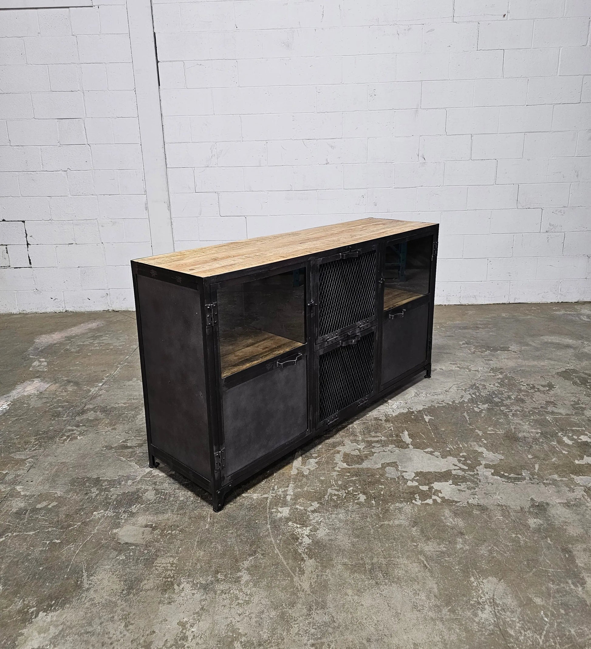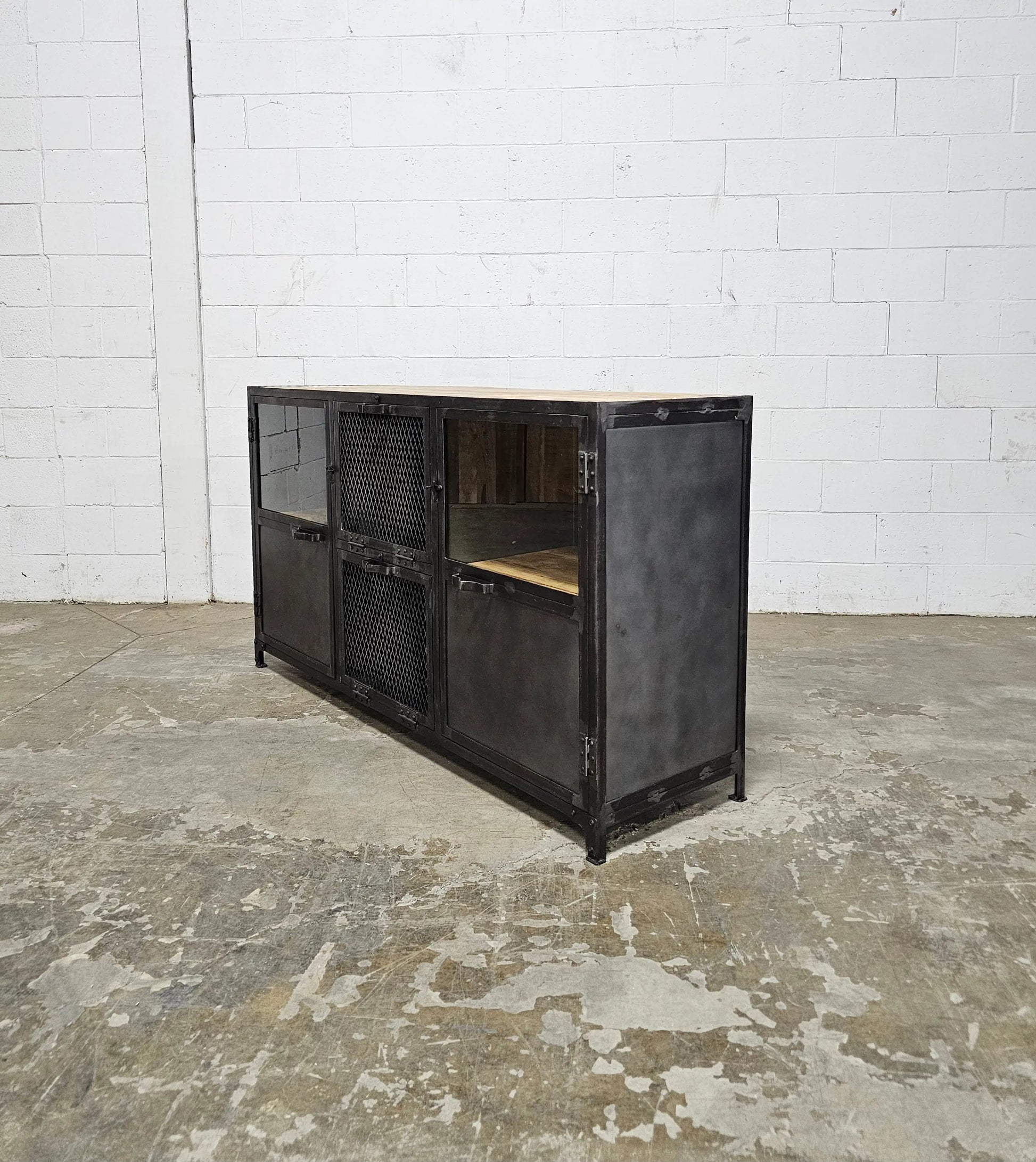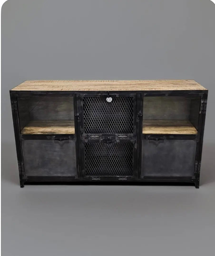 Buffet Ibiza en Bois de Manguier & Acier Brut – Portes Vitrées Style Atelier