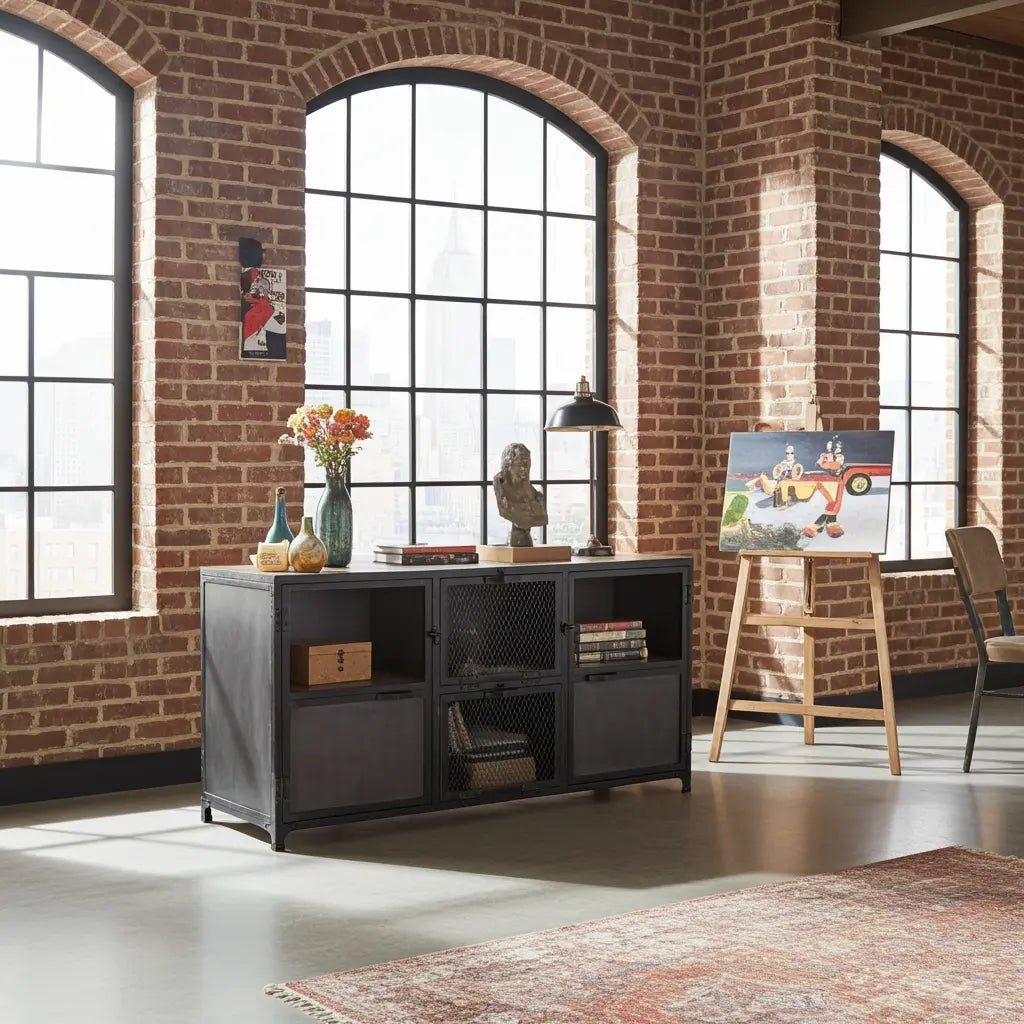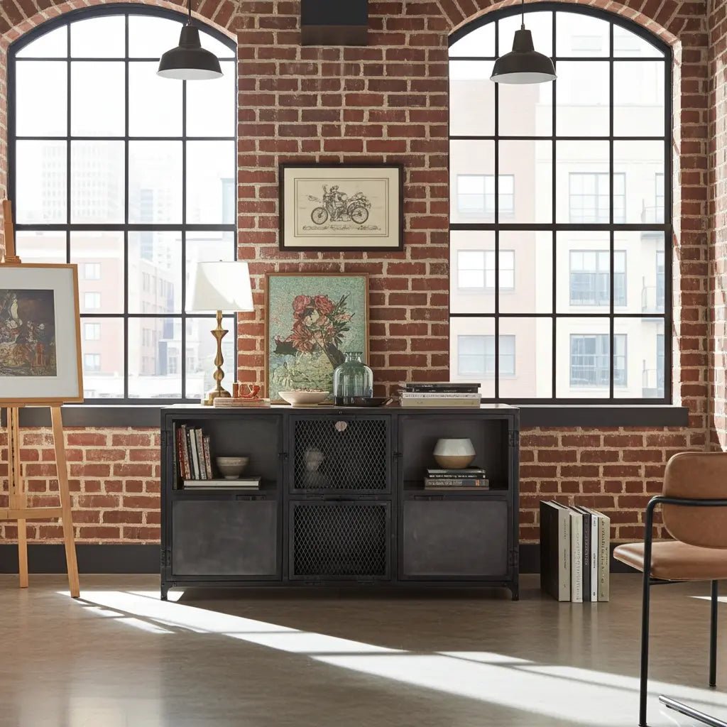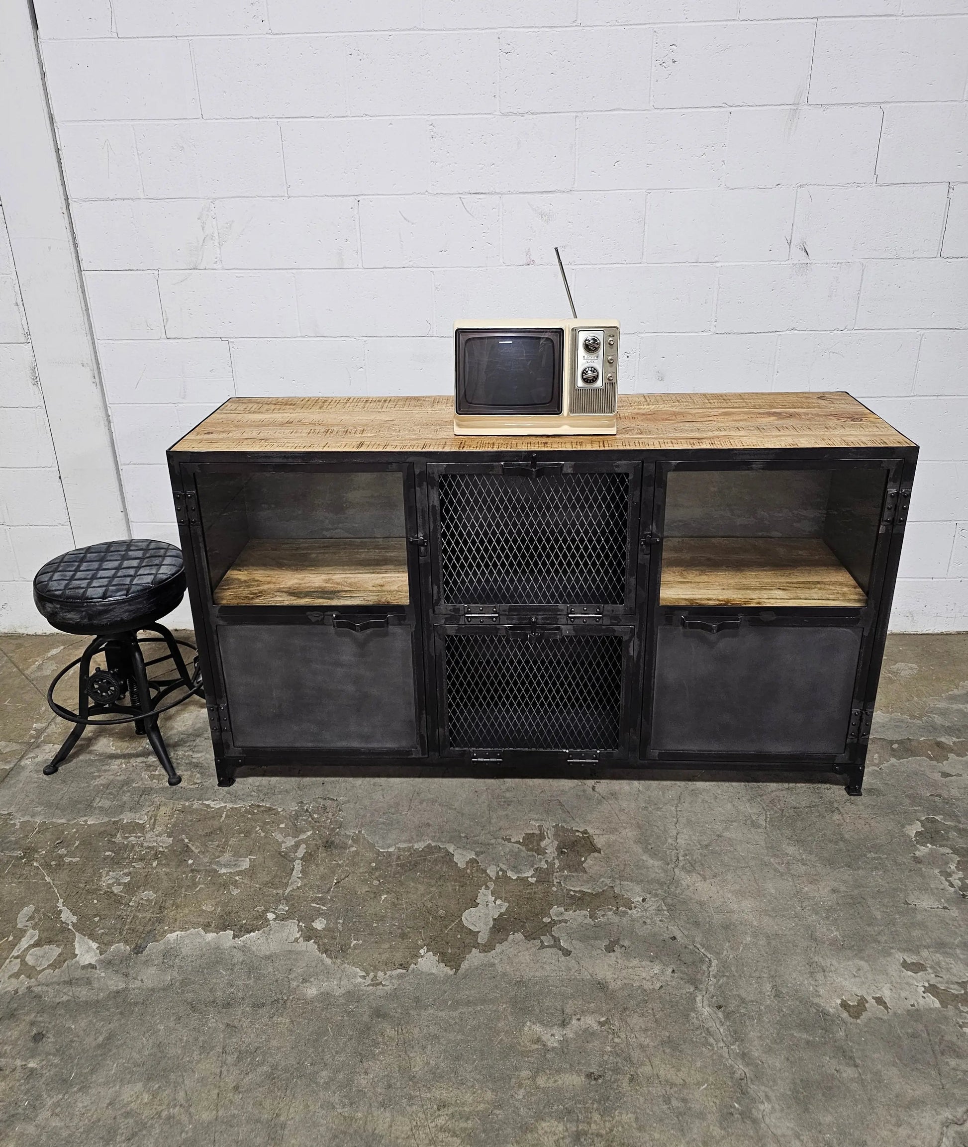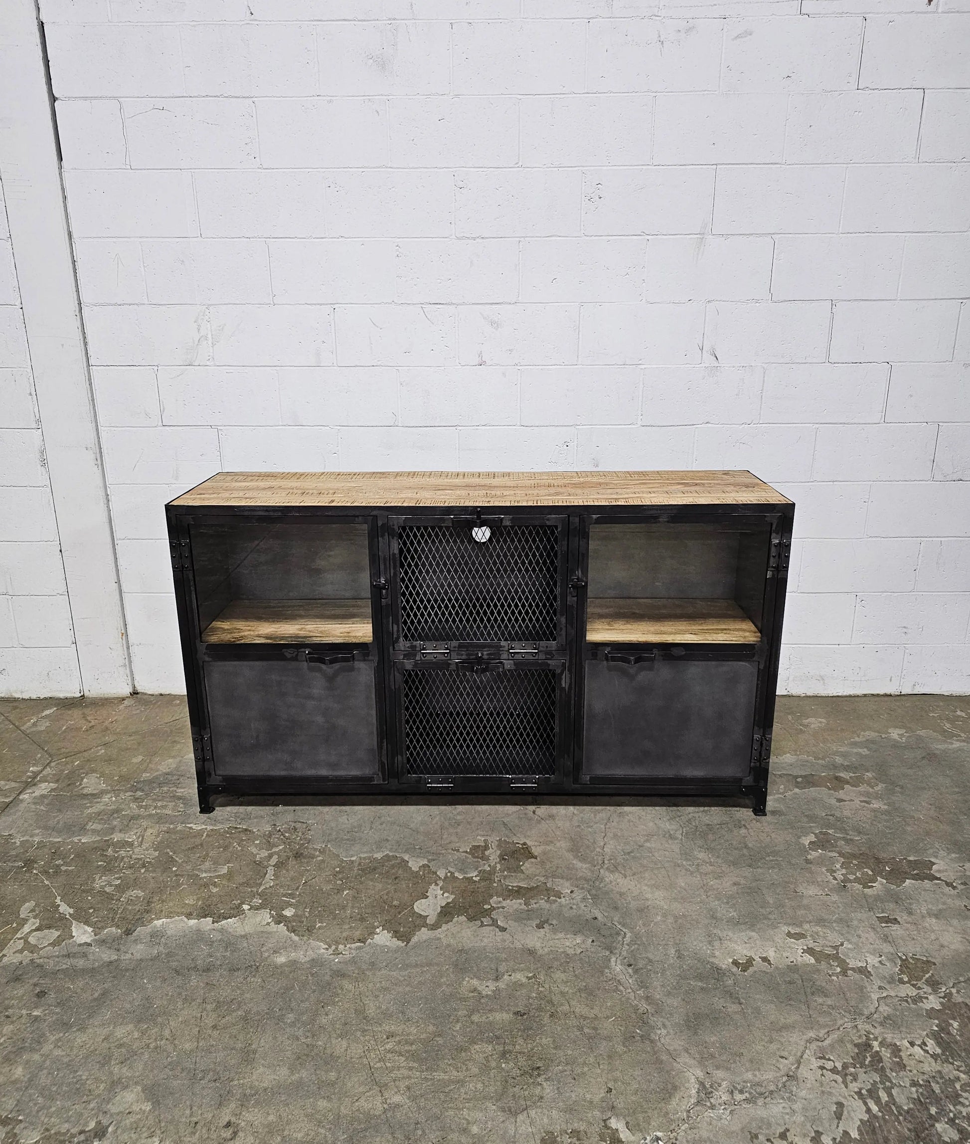 Buffet Ibiza en Bois de Manguier & Acier Brut – Portes Vitrées Style Atelier