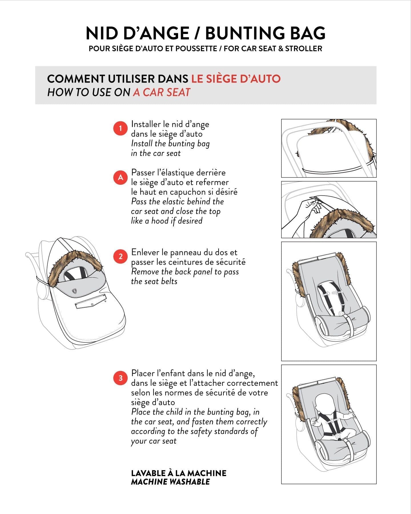 This snuggle bag for babies provides superior warmth and comfort in temperatures down to -20°C (-4°F). Breathable with a waterproof coating to keep infants dry, this bunting bag in chanterelle is car seat compatible with fully detachable back and side zippers that allow for full opening. It’s lined with soft velvet and features a convertible top that can be turned into a hood. A sherpa-lined velour beanie and blanket are included for added warmth.