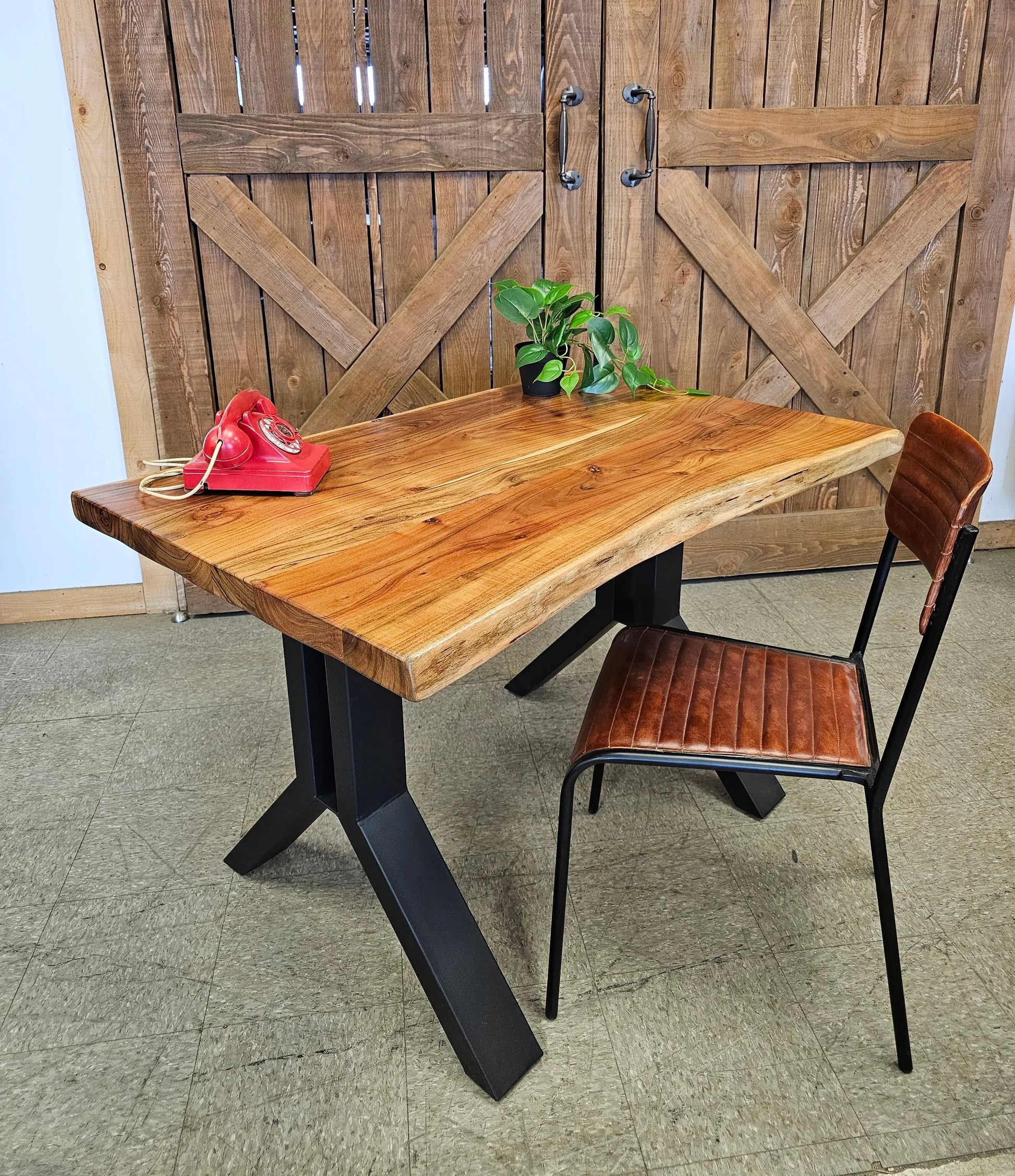 Créez un espace de travail inspirant et robuste avec notre Bureau de Travail en Bois D'acacia massif sur patte en acier noir. Alliant la noblesse du bois naturel à la modernité de l’acier, ce bureau est conçu pour ceux qui recherchent à la fois l’élégance du design industriel et la solidité d'un mobilier haut de gamme.