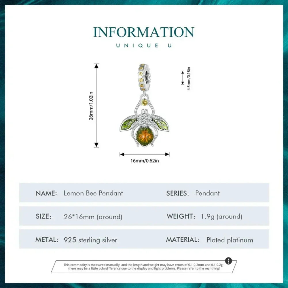 - Unique Design: Eye-catching bee charm with a refreshing lemon motif and leafy wings
