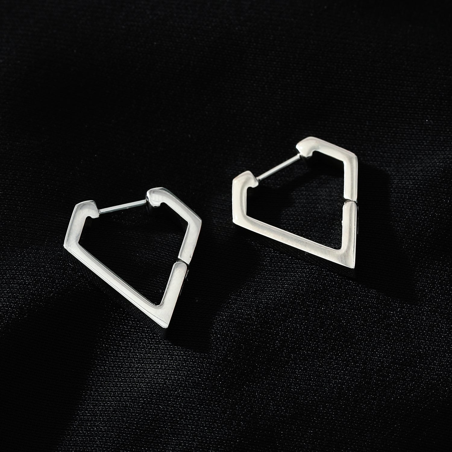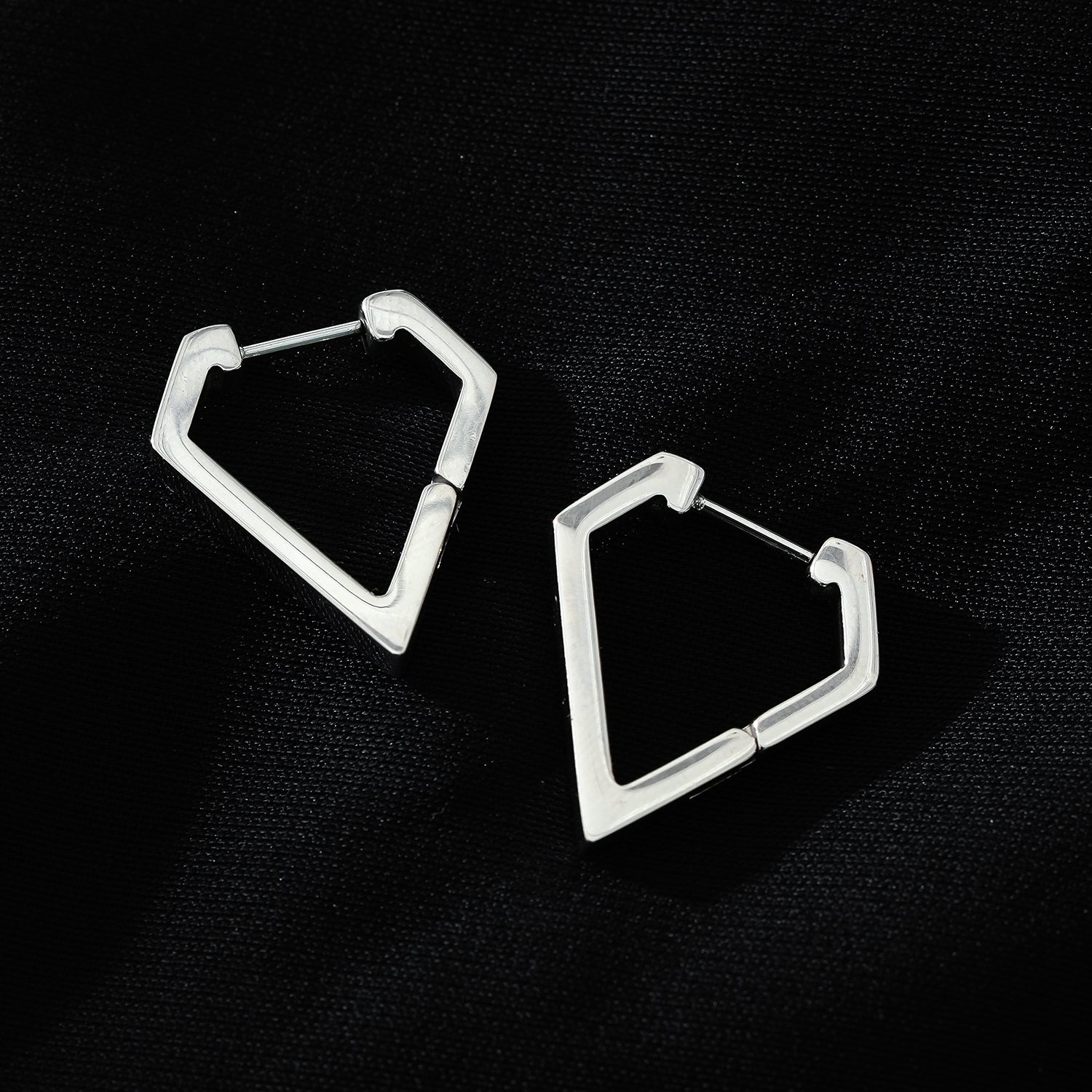 CAGLIARI: Triangle Shaped Contemporary Hoop Earrings in White Gold (Silver Toned)