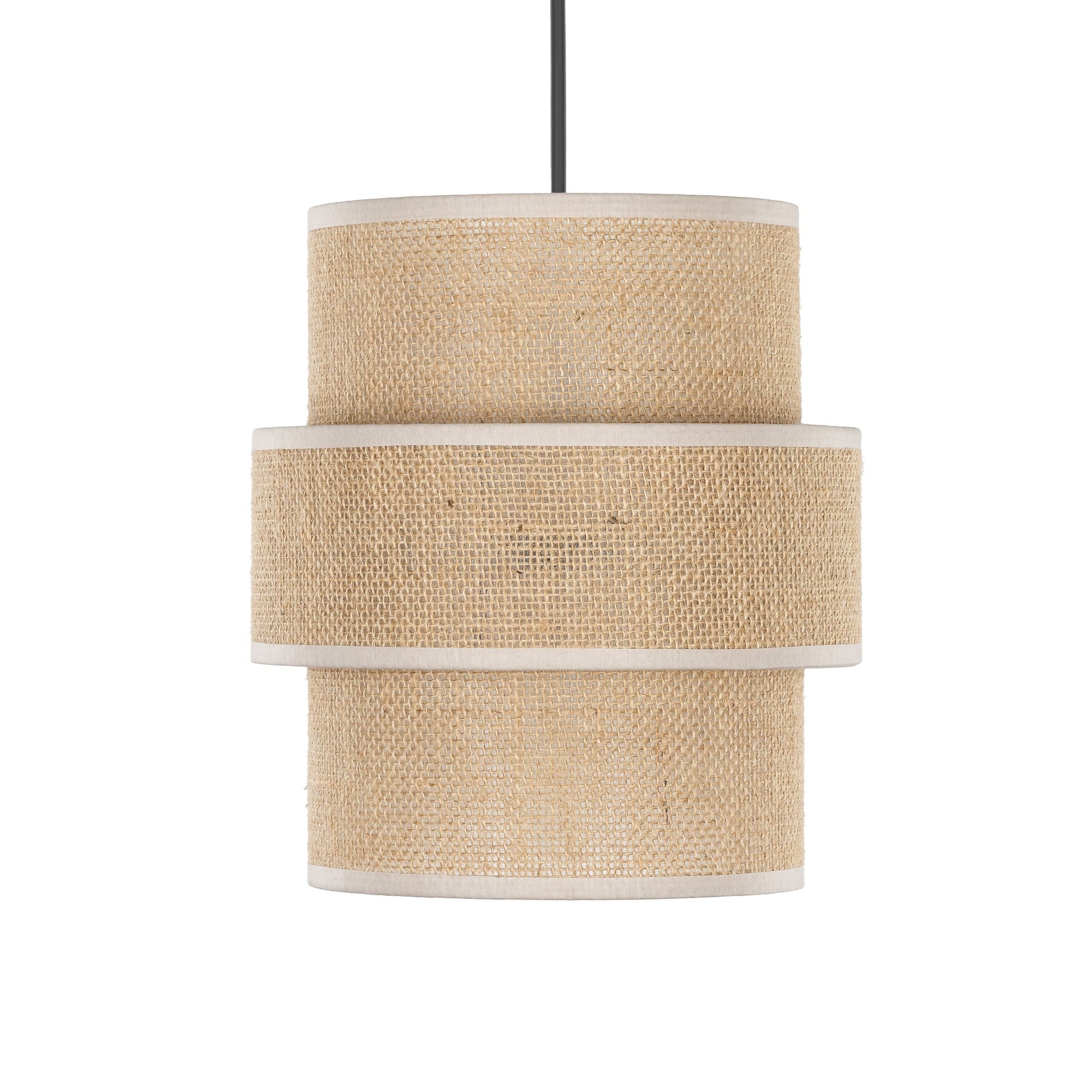 The CALISTO JUTE lamp is a great choice for unique design and functionality. Its lampshade features two cylinders of different sizes, creating an elegant and eye-catching look. Made from eco-friendly jute material, it’s both sustainable and stylish. This design evenly spreads light, providing soft and pleasant illumination. Perfect for setting a romantic mood in the bedroom or offering cozy lighting in the living or dining room, the CALISTO JUTE adds style and charm to any space.