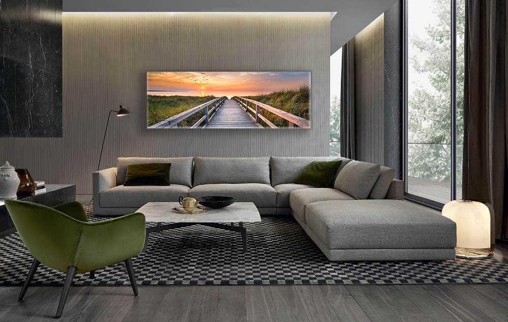 Discover the perfect addition to your home decor with this stunning canvas print. With a breathtaking sunset in Miami Beach as the subject, this print captures the beauty of nature and peacefulness of the beach walk. The vibrant green grass provides a unique touch to this masterpiece, while the birds flying in the background create a sense of tranquility. This canvas print is sure to bring a sense of peace and serenity into your home.