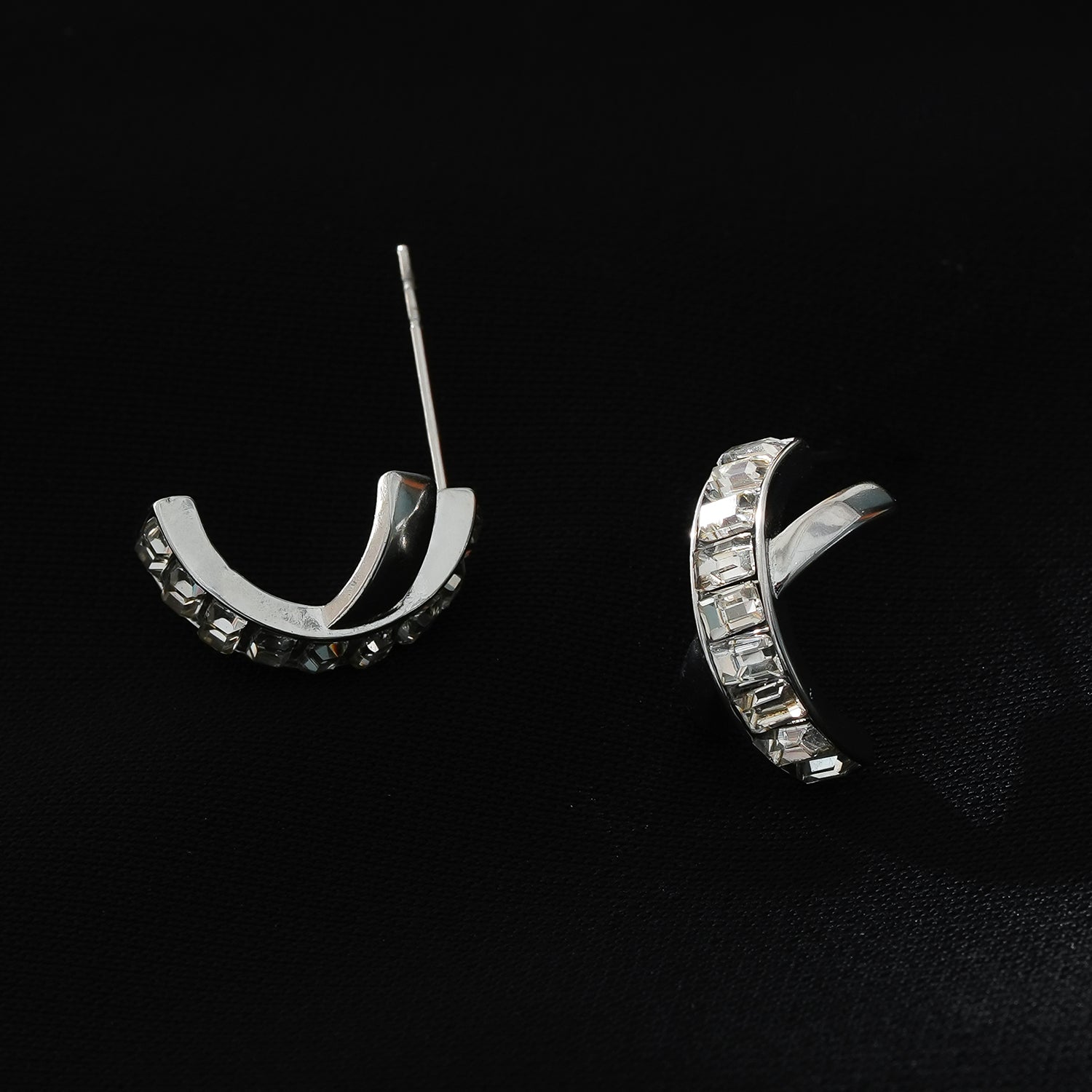 CARBIS: Retro Style Crossover Zirconia Embedded Earrings in White Gold (Silver Toned)