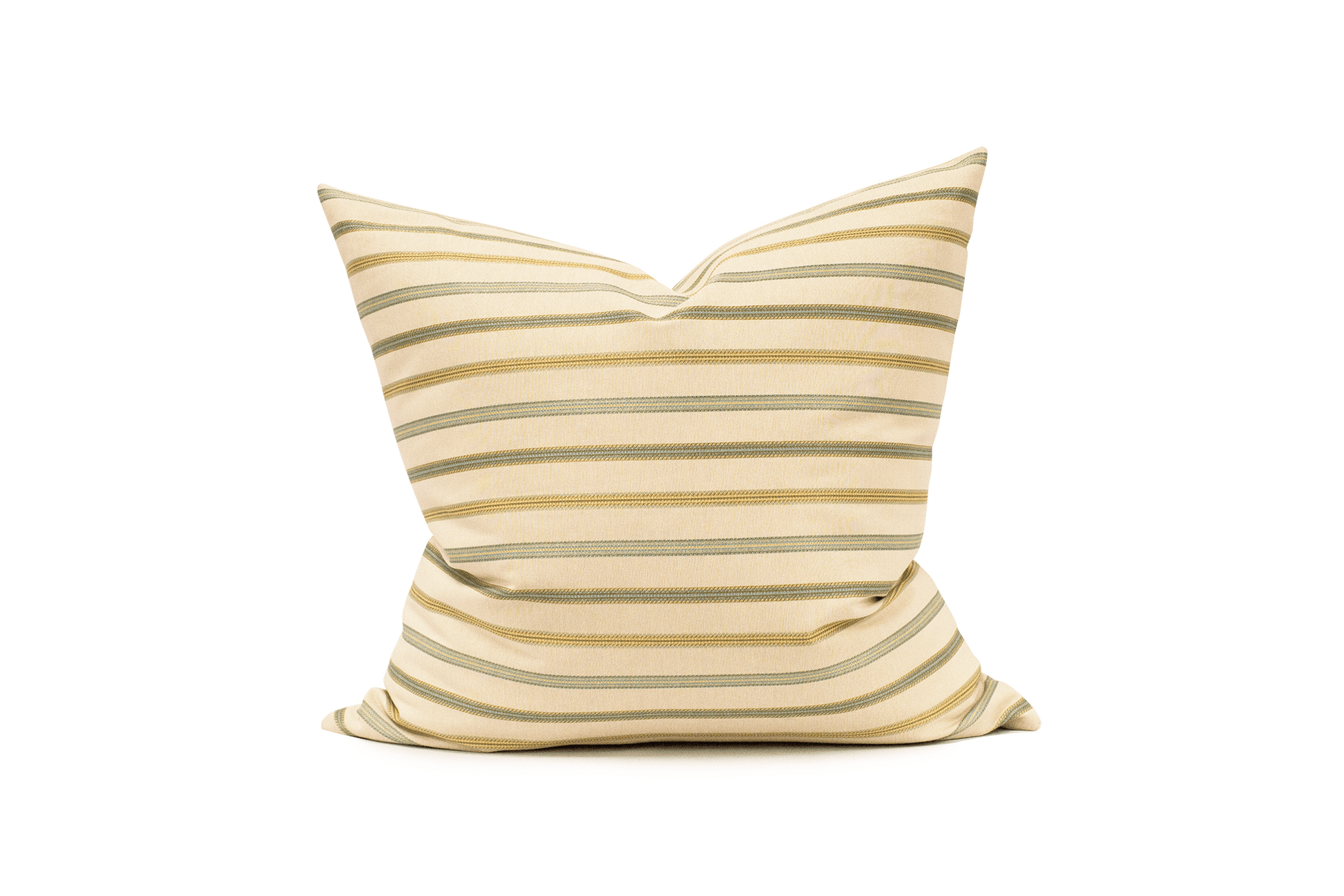Pair this cover with your favourite cushion to accessorize and add comfort to a sofa, armchair or bed. Blue, olive and gold make up these beautiful woven stripes.