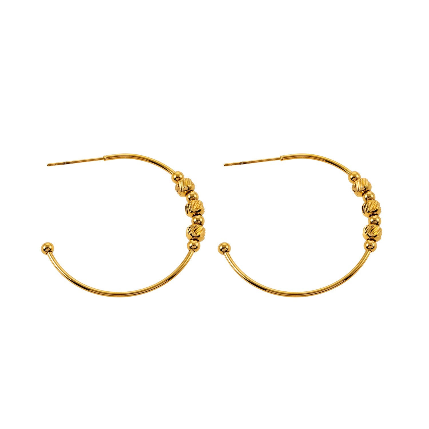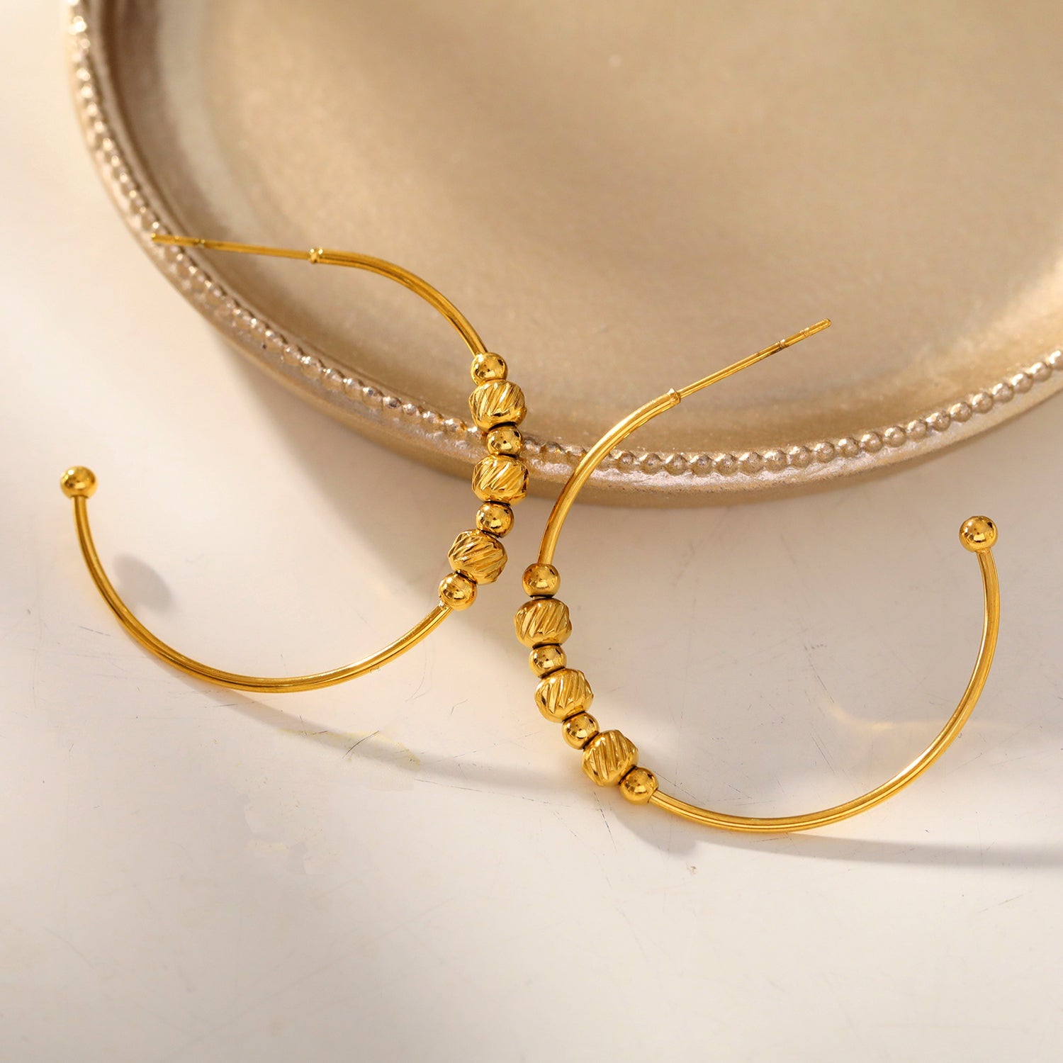 Large and small charm beads attached gracefully on this hoop earrings, creating an accessory that embodies the beauty of versatility. A symbol of timeless charm with a contemporary twist.