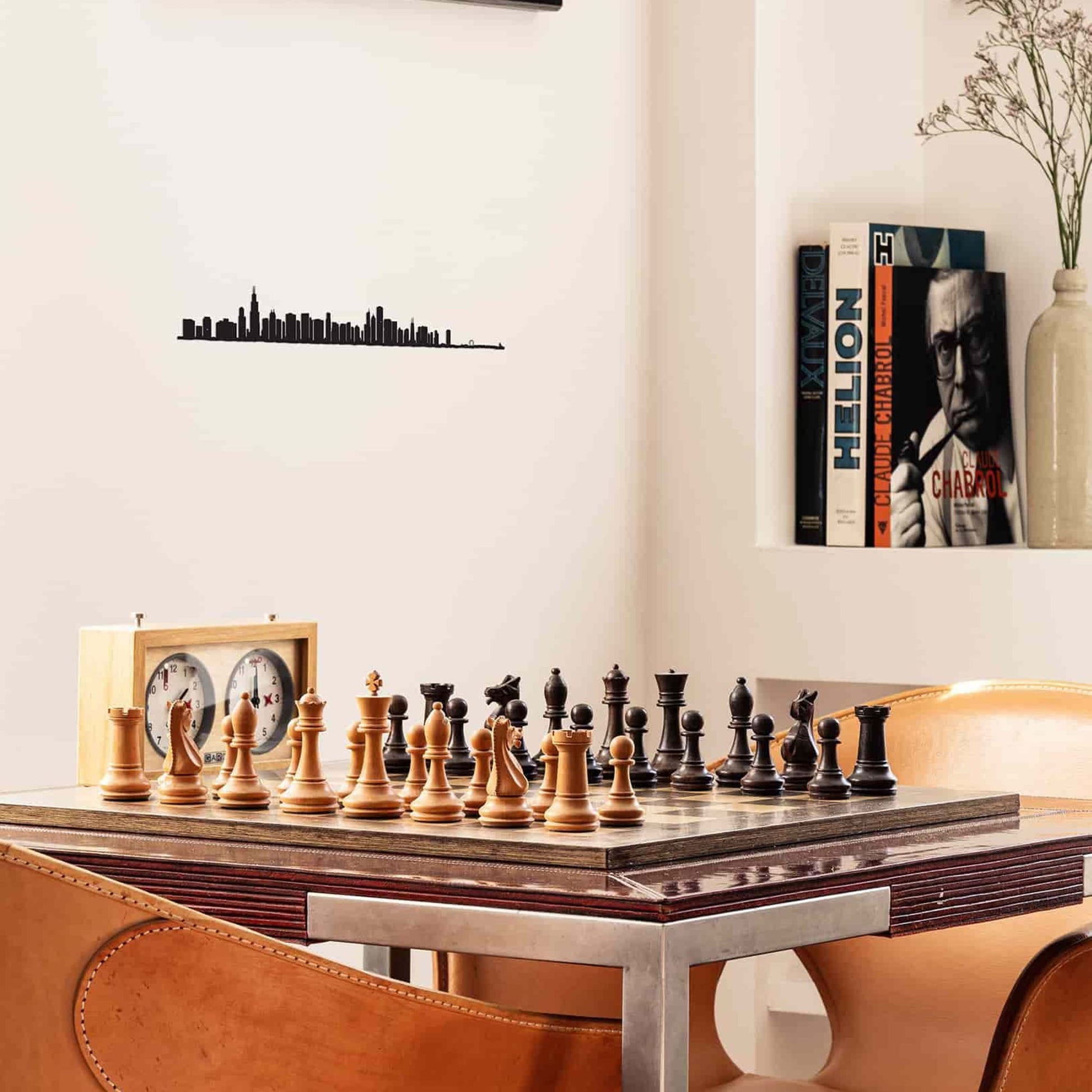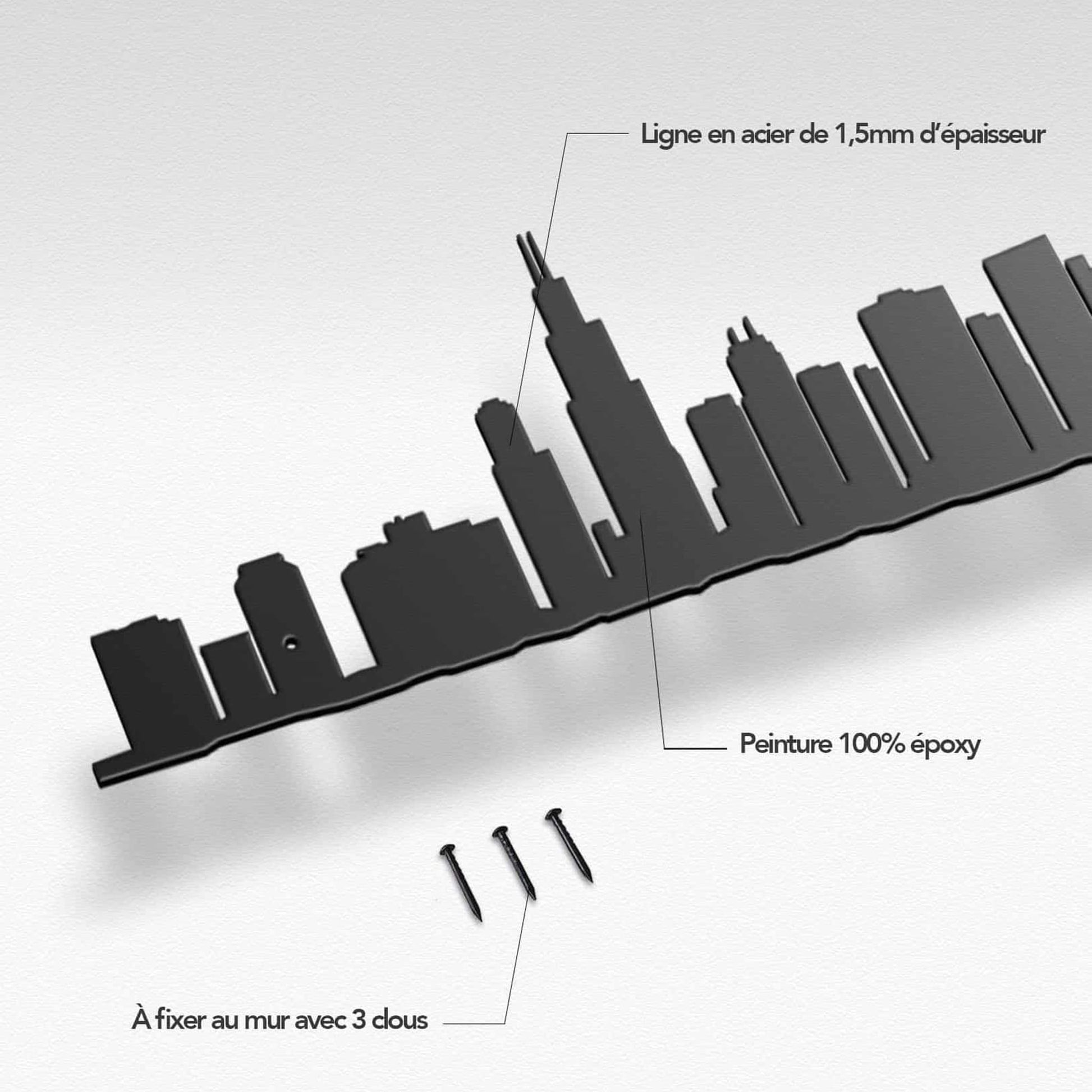 The Chicago Line, available in a 50 cm format, artfully captures the Windy City's iconic skyline. This piece elegantly brings the architectural grandeur and spirit of Chicago into any space, perfect for those who admire the city's rich history and towering skyscrapers.