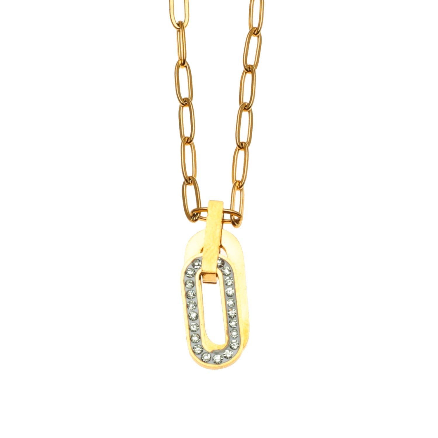 CHICALA: Zirconia-Embedded Oval Shaped Charms Pendant on Paper-Clip Chain Necklace