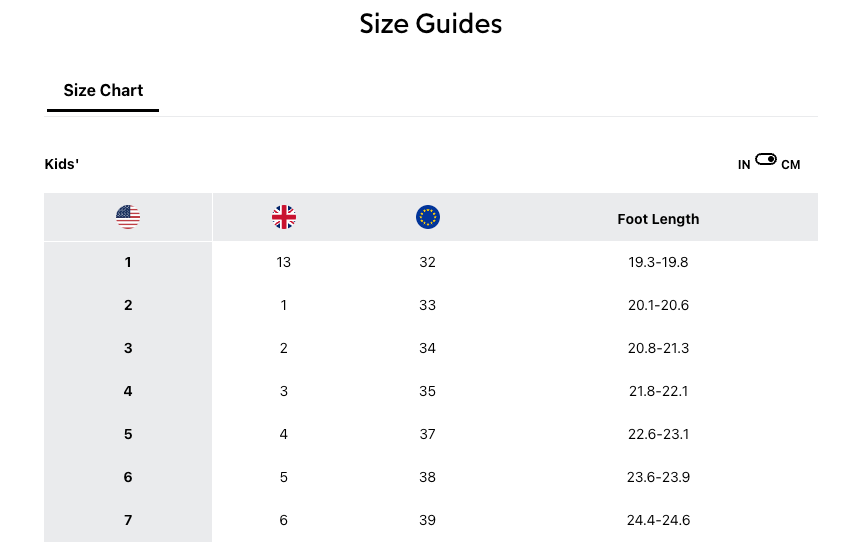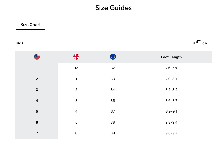 Youth Bugaboot Size Chart is available in photos