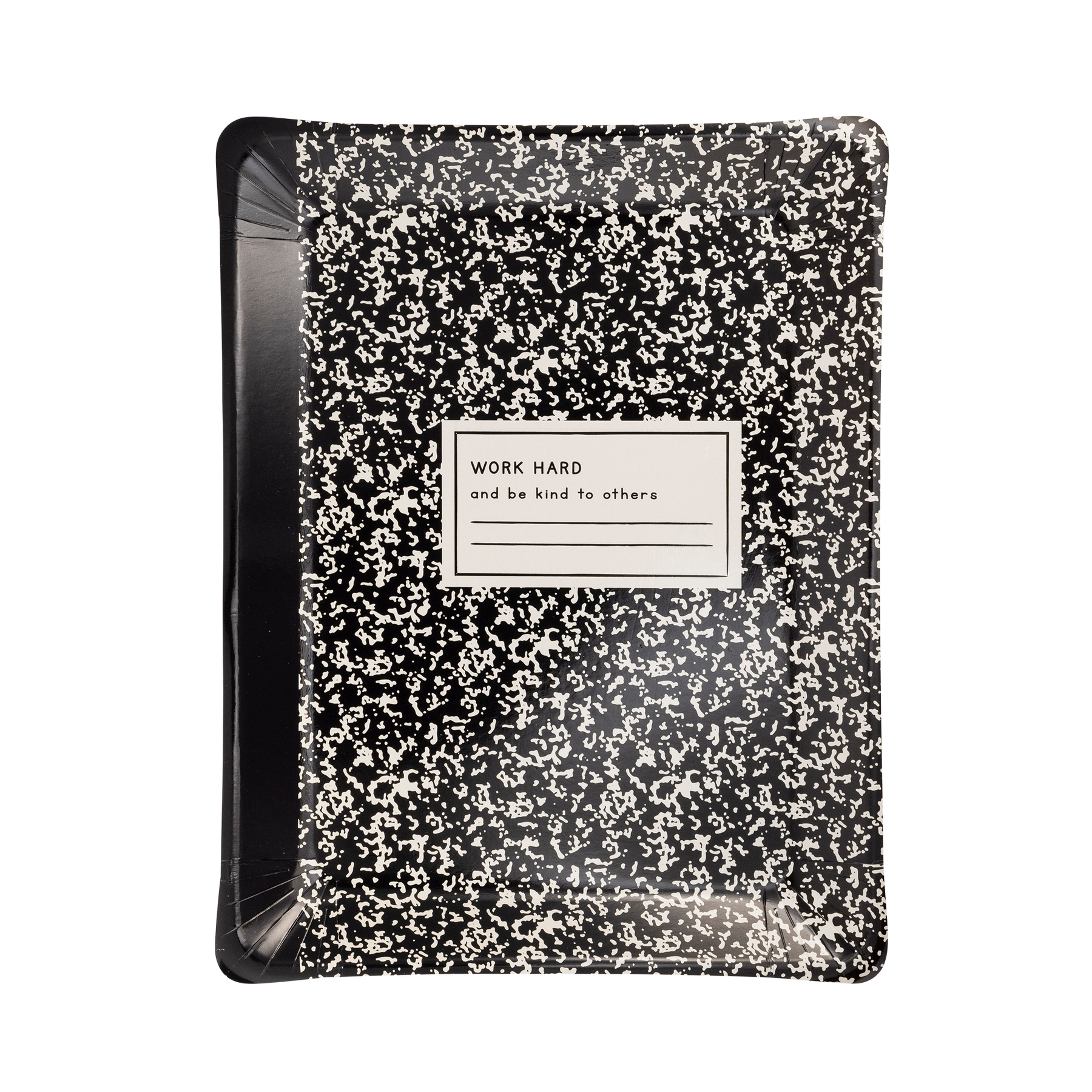 Get back to school in style with our Composition Notebook Plate! These unique plates are shaped like a composition notebook, adding a fun touch to any occasion. Perfect for parties or everyday use, these plates are sure to make a statement. (Note-taking not included.)