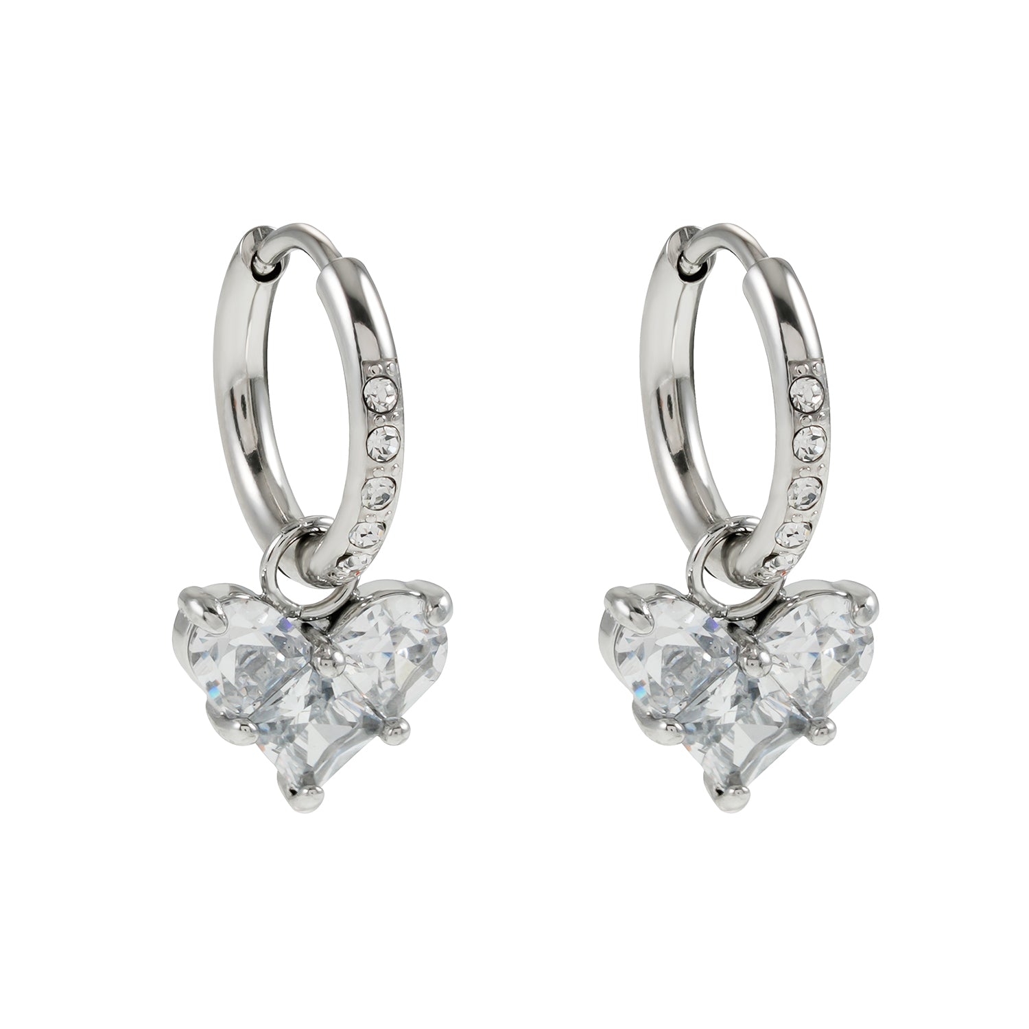 CREEDA White Gold (Silver Toned): Vintage Style Zirconia Embedded Hoops with Moissanite Heart Charm