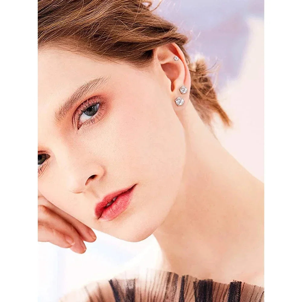 Cz Stud Earrings - 925 Sterling Silver Platinum Plated - Round Cubic Zirconia Hypoallergenic Earrings 4Mm 5Mm 6Mm 7Mm Bse166