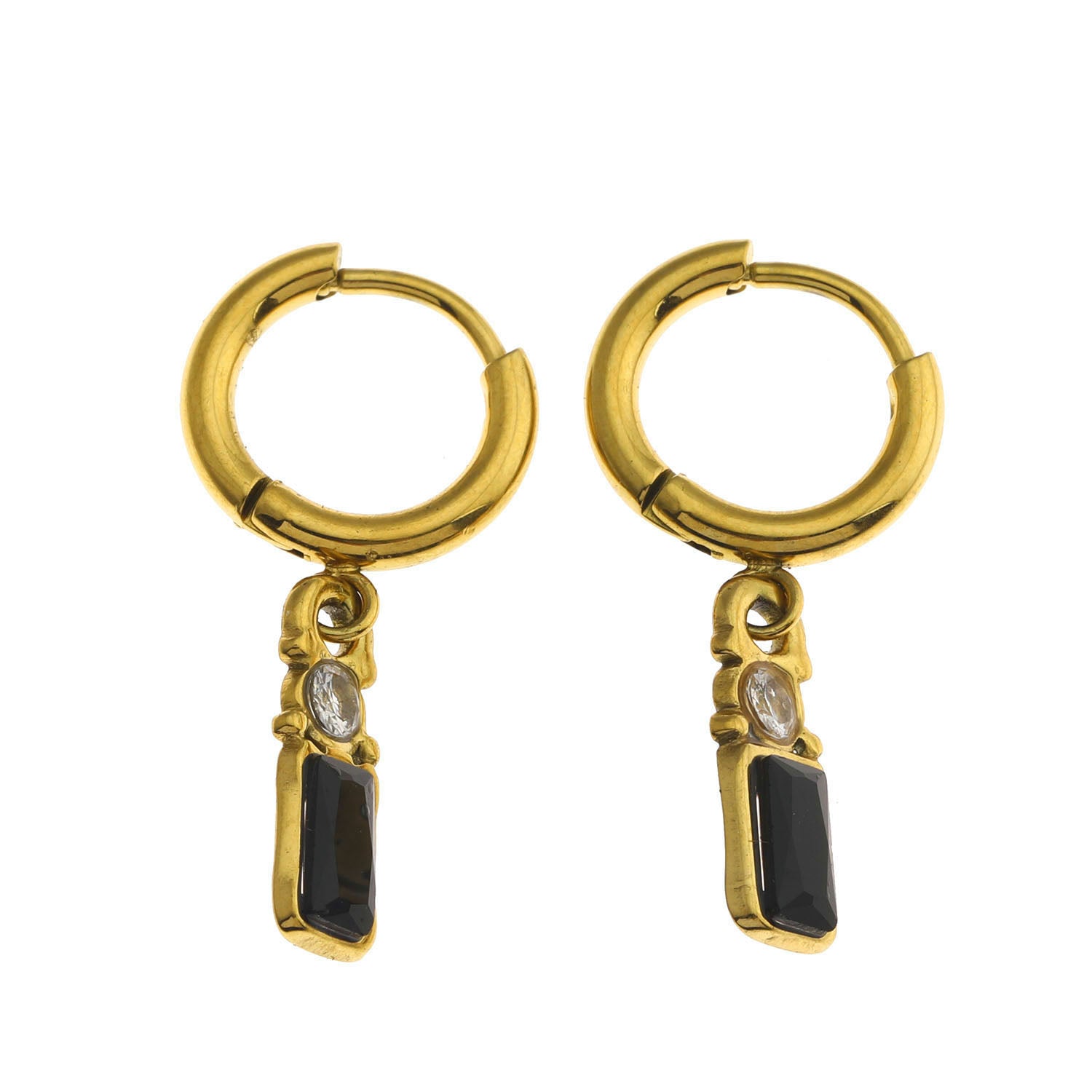 Style: DALAL 221115 Vintage Inspired Black Crystal & Zirconia Hoop Earrings