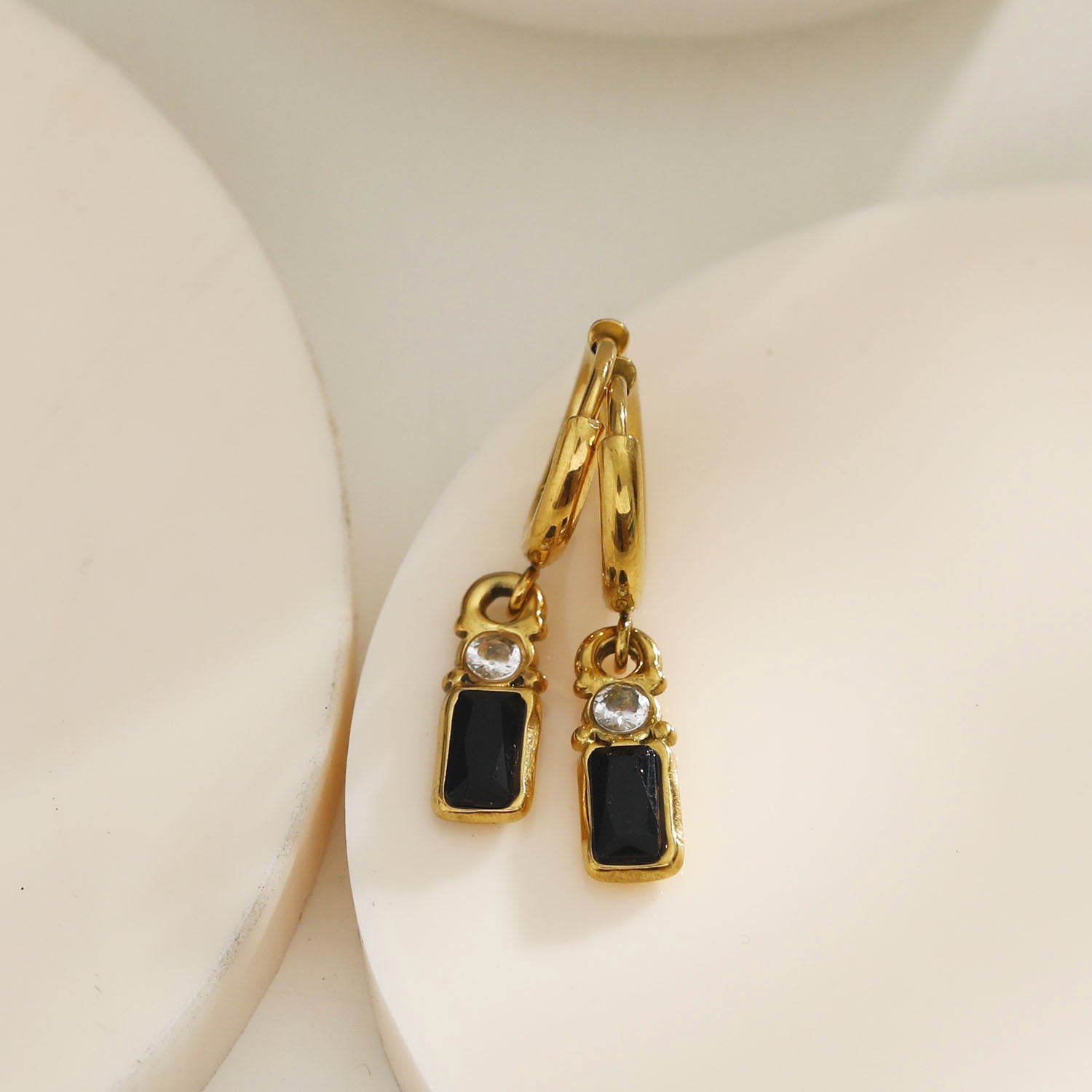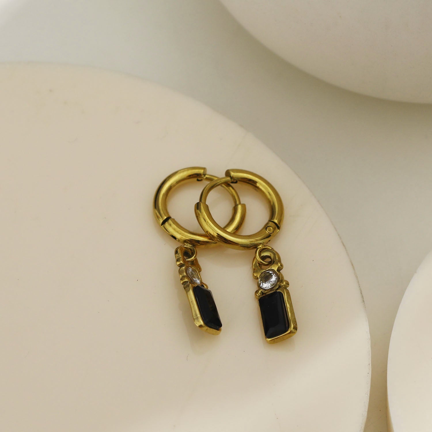 DALAL Vintage Inspired Black Crystal & Zirconia Hoop Earrings