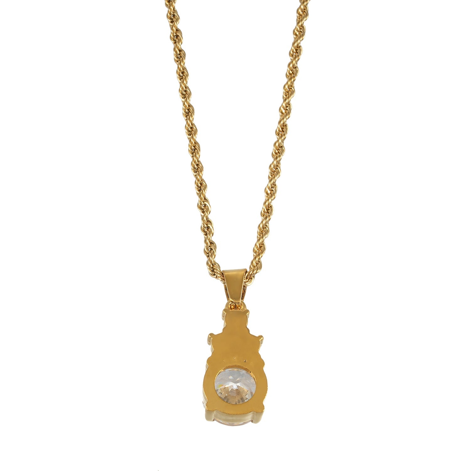 The rope chain’s subtle texture adds depth and dimension, giving the necklace a luxurious look while remaining lightweight and comfortable for all-day wear. Whether styled as a statement piece or layered with other delicate chains, this necklace is versatile enough for both everyday elegance and special occasions.