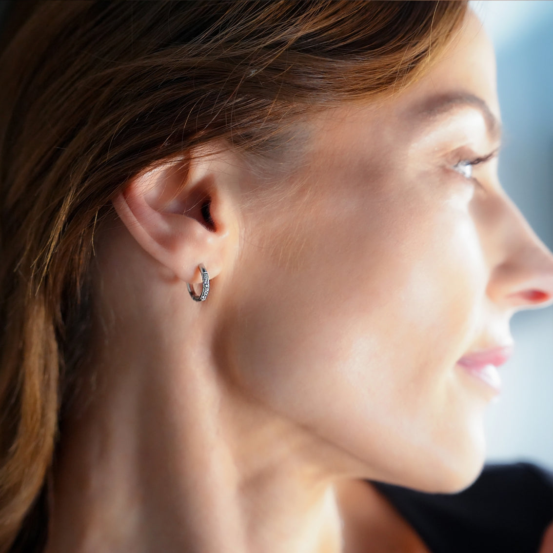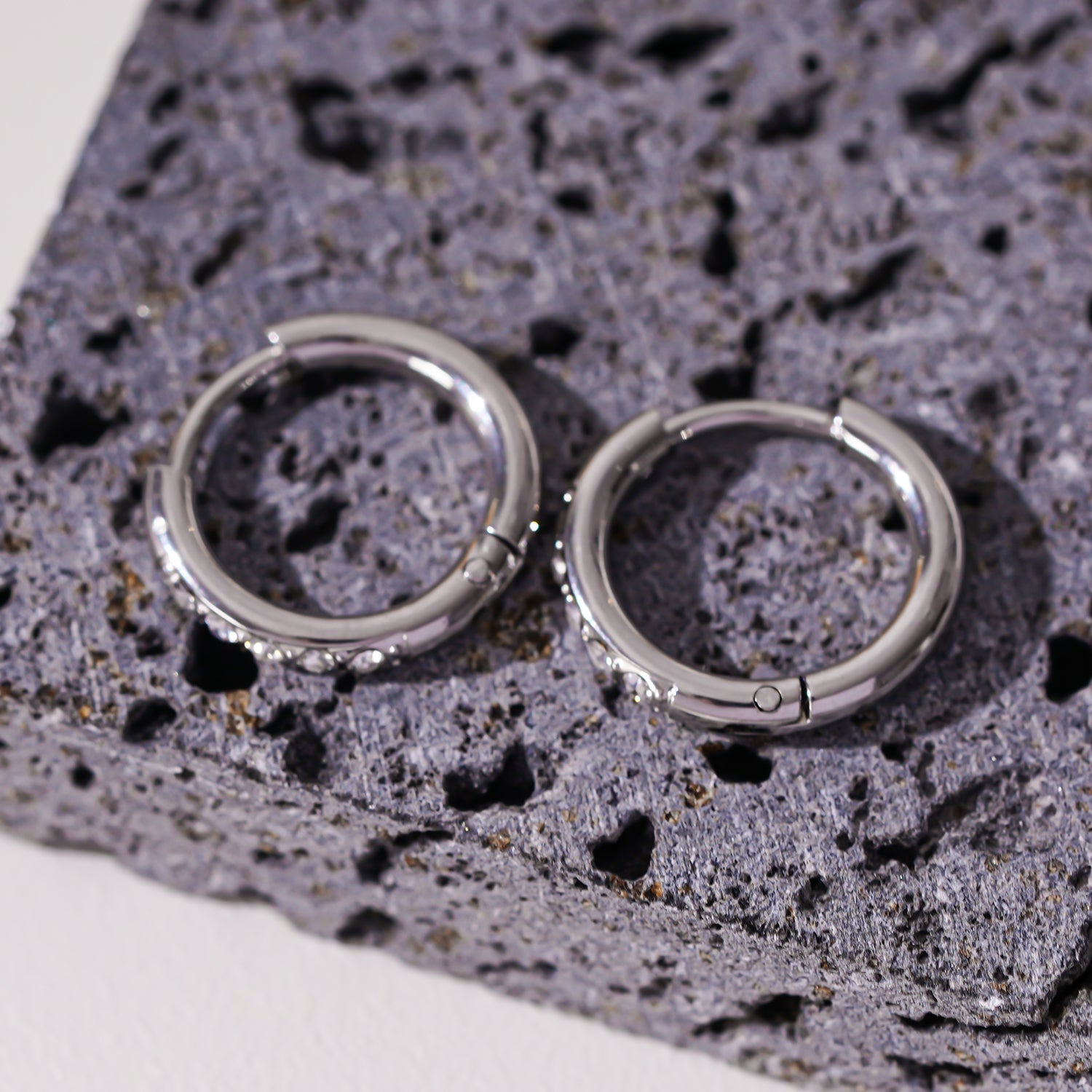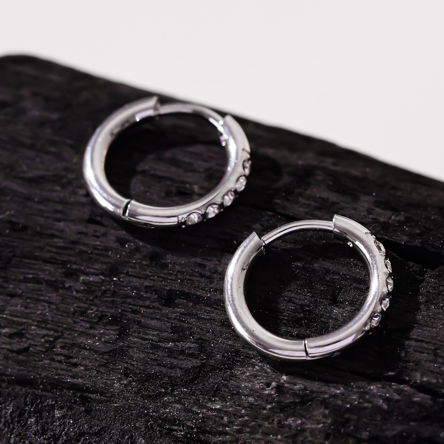 DARCI: Pavé Zirconia Gemstone Embedded Classic Mini Hoop in Silver