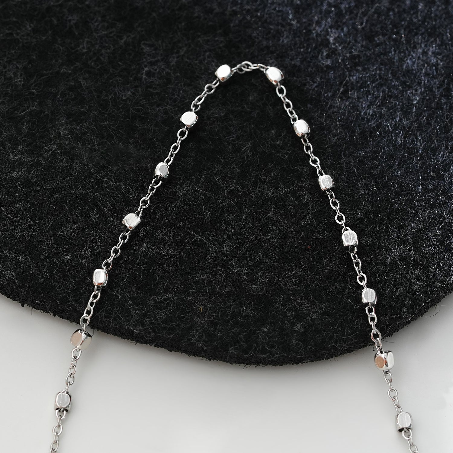 The square beads that adorn this anklet add a contemporary twist to a classic design, creating a unique and eye-catching piece. The geometric allure of the square beads ensures a chic and polished look, making it the perfect accessory for a stylish look.