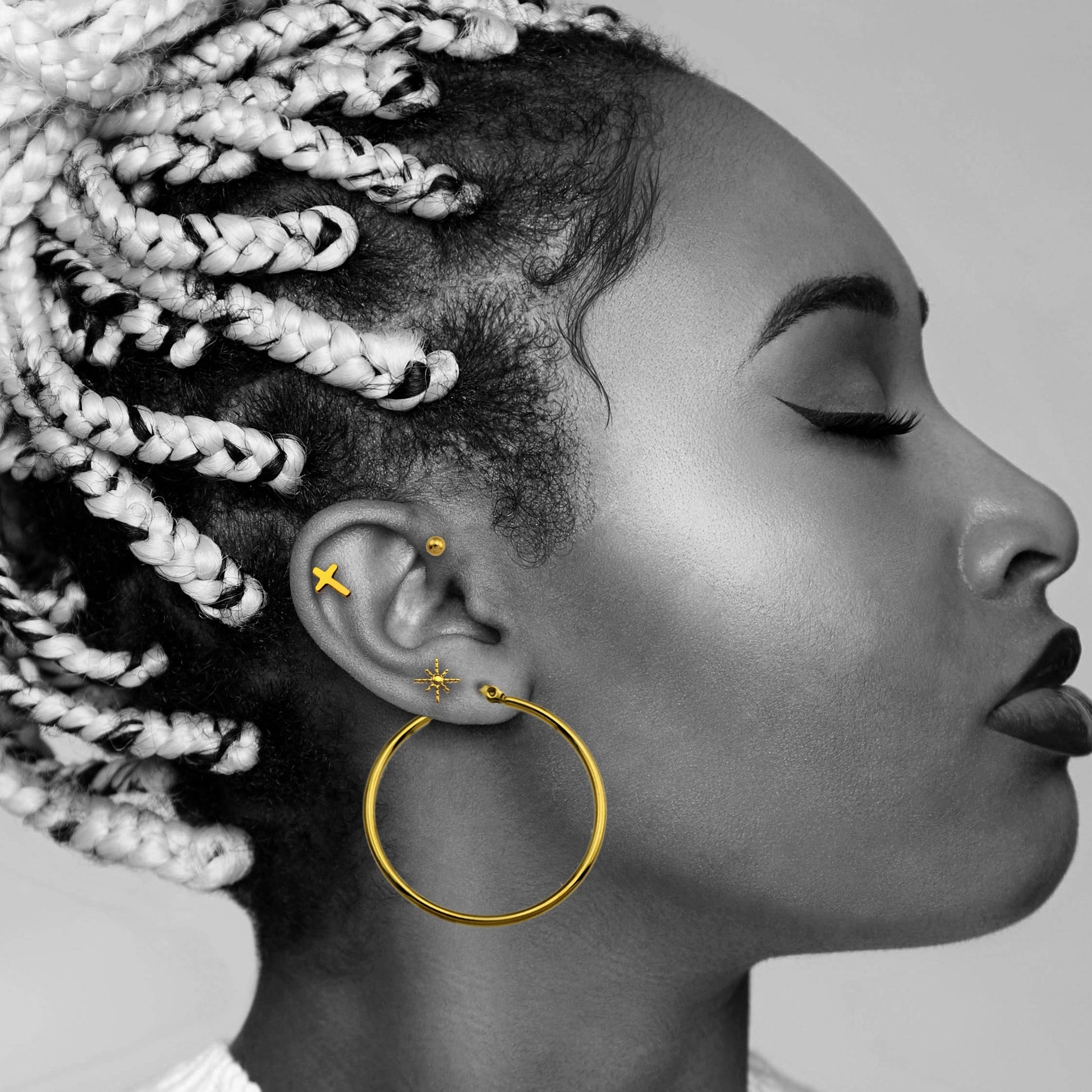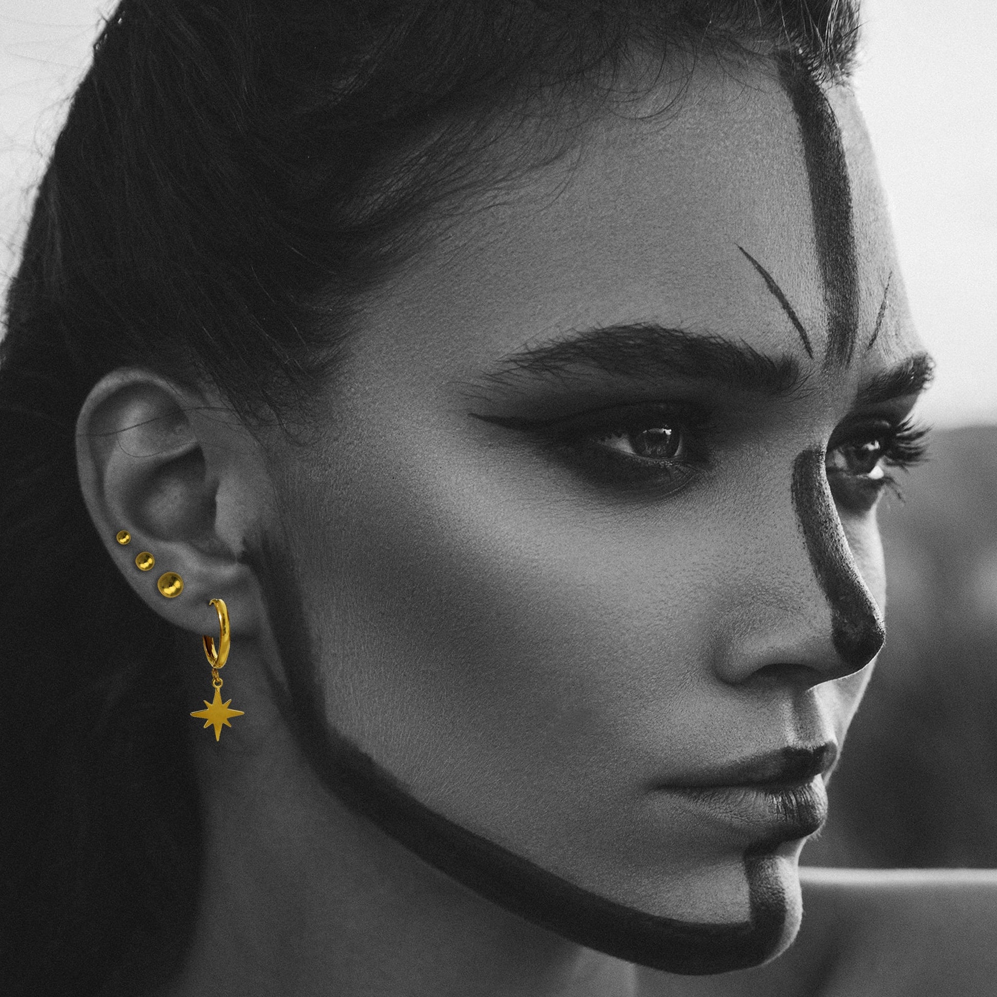 Rock your look in edgy elegance & enhance your ear stack with this rounded bead stud set.
